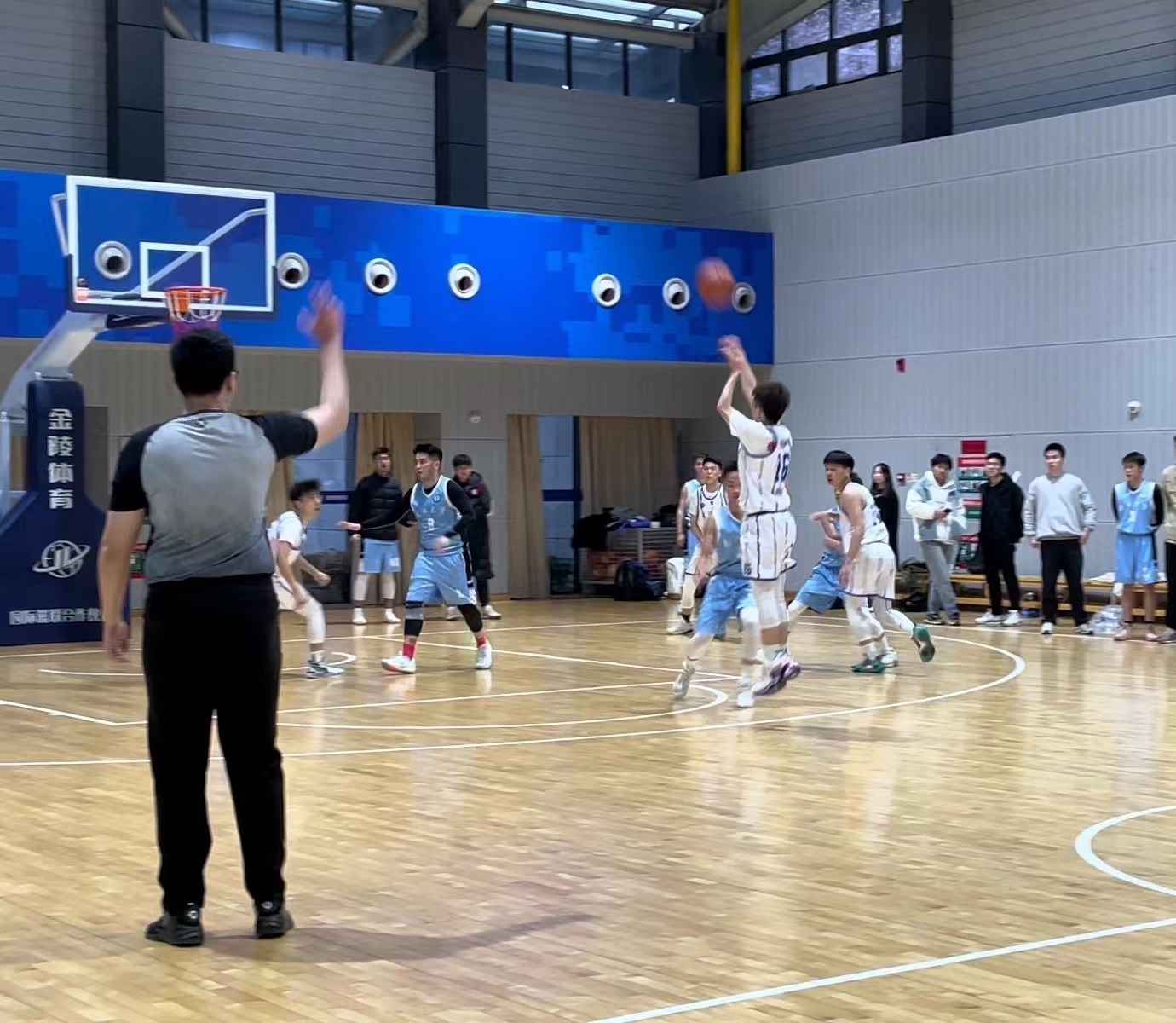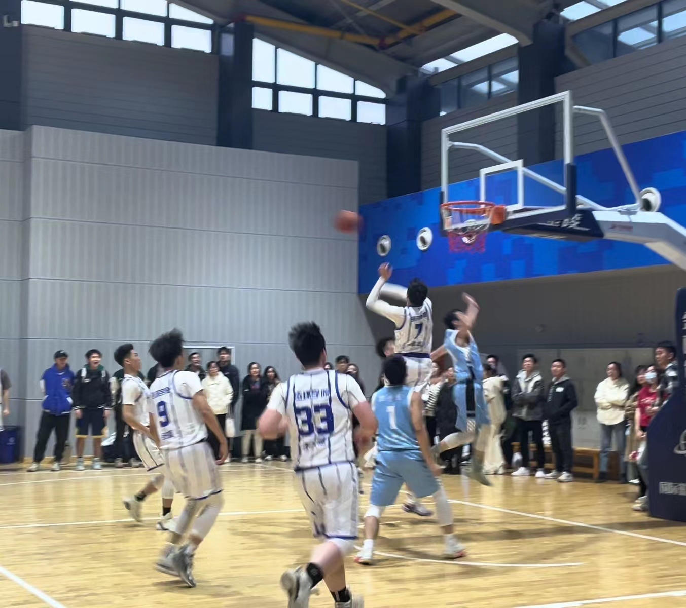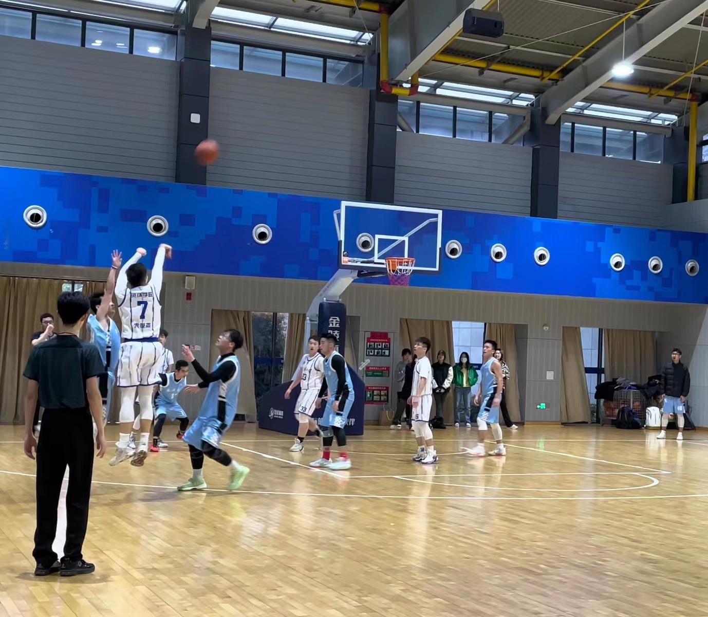 下半场易边再战,法学院男篮发起了猛烈的反扑,凭借核心球员的发挥,连续冲击内线得手,关键时刻,又是朱俊杰站了出来,在离三分线还有一步的位置,果断出手,他在这一刻化身朱芳雨!手挽高丽弓!气满开青虹!手起刀落,篮球直入网窝。随后,又在防守端送给对手一记排球大冒。攻防两端的出色表现,不仅扑灭了对方反扑的势头,也引得全场欢呼。接下来双方展开了精彩的拉锯战,法学院男篮则是依靠着出色的团队配合,不断迫近比分。老王论坛