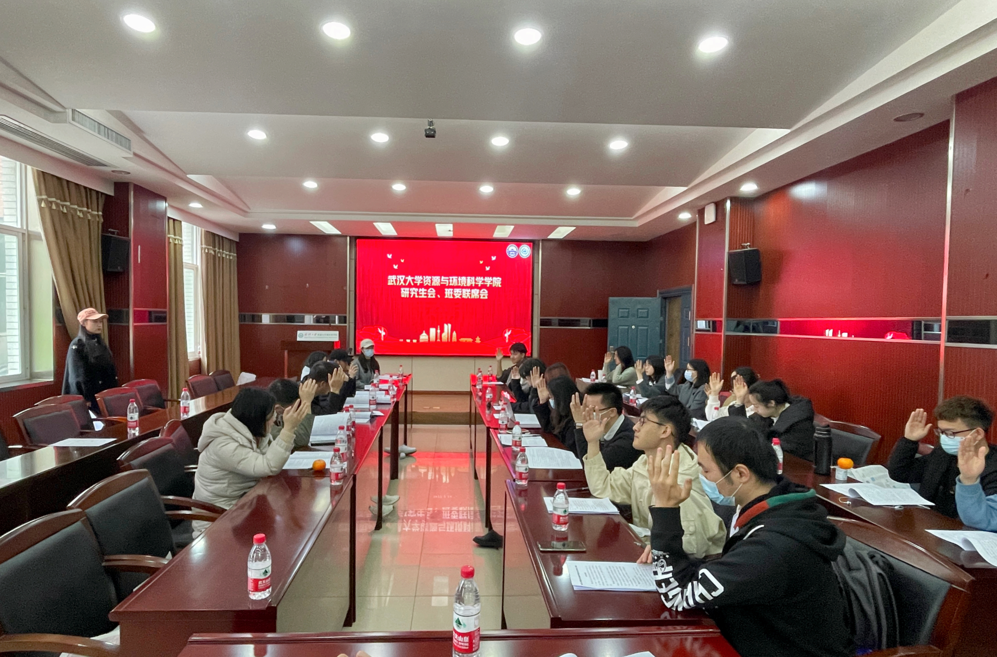 第二十届研究生会、班委联席会在资环学院220学术报告厅举行,院研究生会主席团成员、部门负责人和班委联席会委员参加会议。本次会议由院研究生会主席团成员钱婧同学主持。
