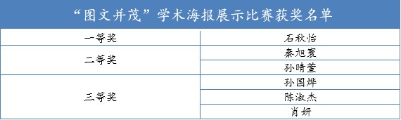 的3位有着丰富的学术海报制作和鉴赏经验的老师组成。经评审团评选最终产生一等奖1名、二等奖2名、三等奖3名。