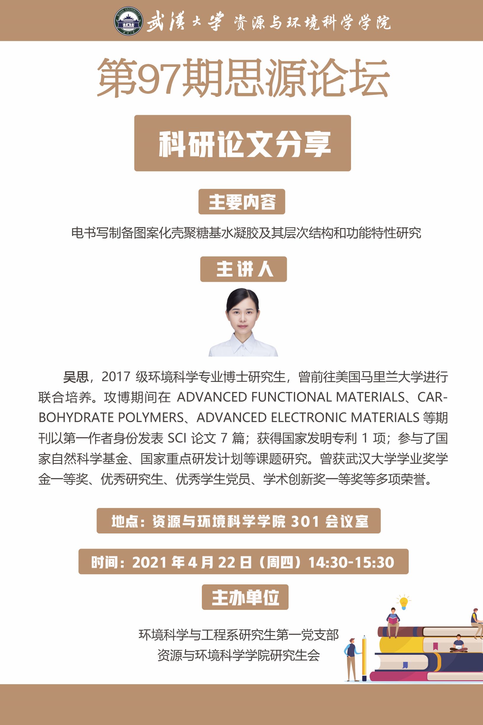 那就快来参加第97期思源论坛! 让我们一起在水凝胶的海洋中畅游吧!