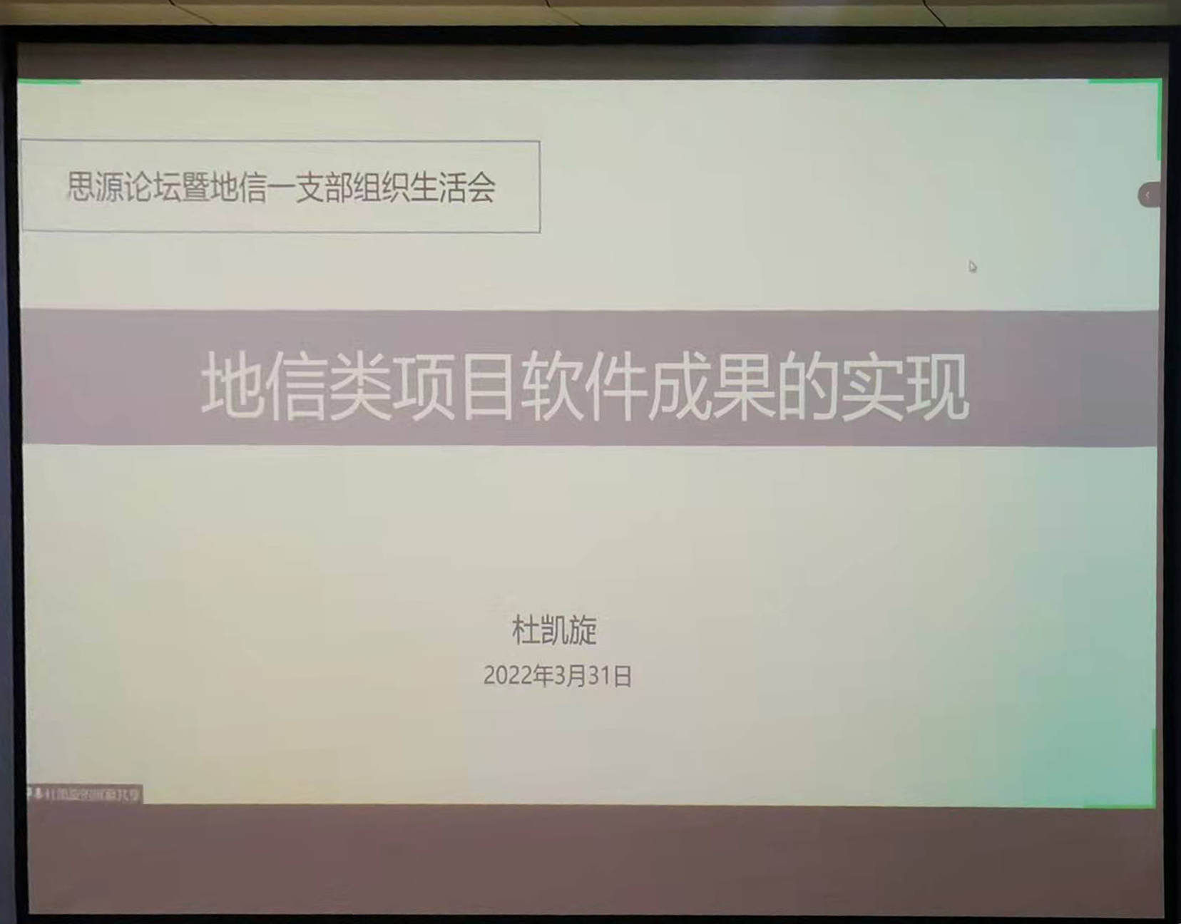2022年3月31日,院办301会议室,思源论坛第103期暨地理信息与地图科学系研究生第一党支部学习交流会顺利举办。此次活动由地理信息与地图科学系研究生第一党支部、老王论坛