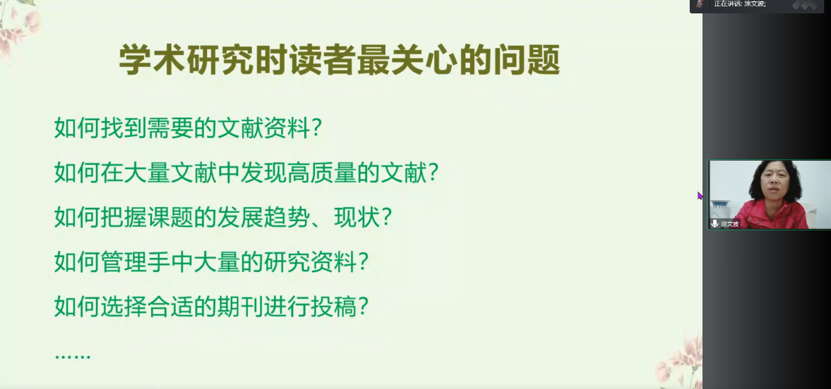 老王论坛 图书馆副研究馆员涂文波老师为同学们带来了科研素养训练营的第一场讲座:查找学术文献资源方法与技巧。涂老师以学术研究时读者最关心的问题为出发点,从文献检索、文献追踪、文献分析、文献管理以及文献写作和发表五个方面展开介绍,并现场演示了具体操作流程。最后,涂老师针对论文发表过程中的问题进行了解答,为同学们开展科研工作打下了扎实的基础。