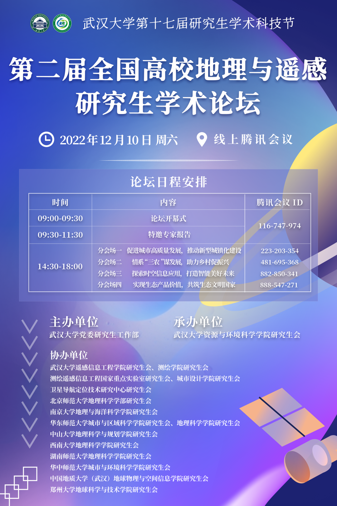 秉持“搭建高水平学术交流平台,拓宽研究生学术视野,激发研究生科研热情,加强同领域学子友好联系”的宗旨,特举办第四届全国高校地理与遥感研究生学术论坛。