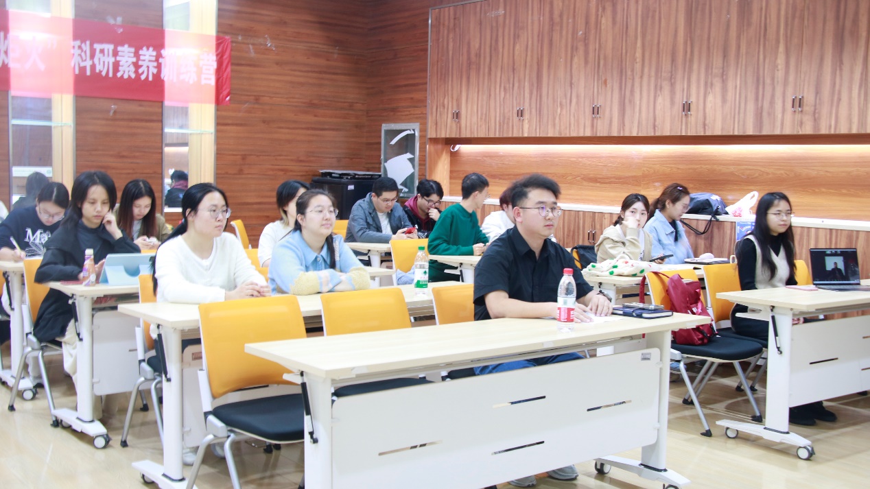 学术科技节系列活动的背景与意义。仝老师强调,该系列活动旨在搭建一个高起点、多领域的学术交流平台,鼓励广大研究生通过“朋辈分享”、专题讲座拓宽学术视野,激发科研热情,勇于自主创新。目前,资环学院已经举办了多次学术交流、科研素养培训等形式丰富的活动。在之后的几个月里,学院将围绕“研途共探索,群星燃炬火”这一主题,针对学生在科研论文写作中遇到的切实困难和实际需求,结合学科特色、学生需求,设计丰富的活动主题。此外,仝老师还结合自身的科研经历,分享了科研素养训练营等专题活动对于同学们成长与进步的重要意义。他强调,这些专题活动不仅能够为同学们提供宝贵的科研和写作经验,更能提升大家的科研素养,为大家在未来的科研道路上奠定坚实基础。