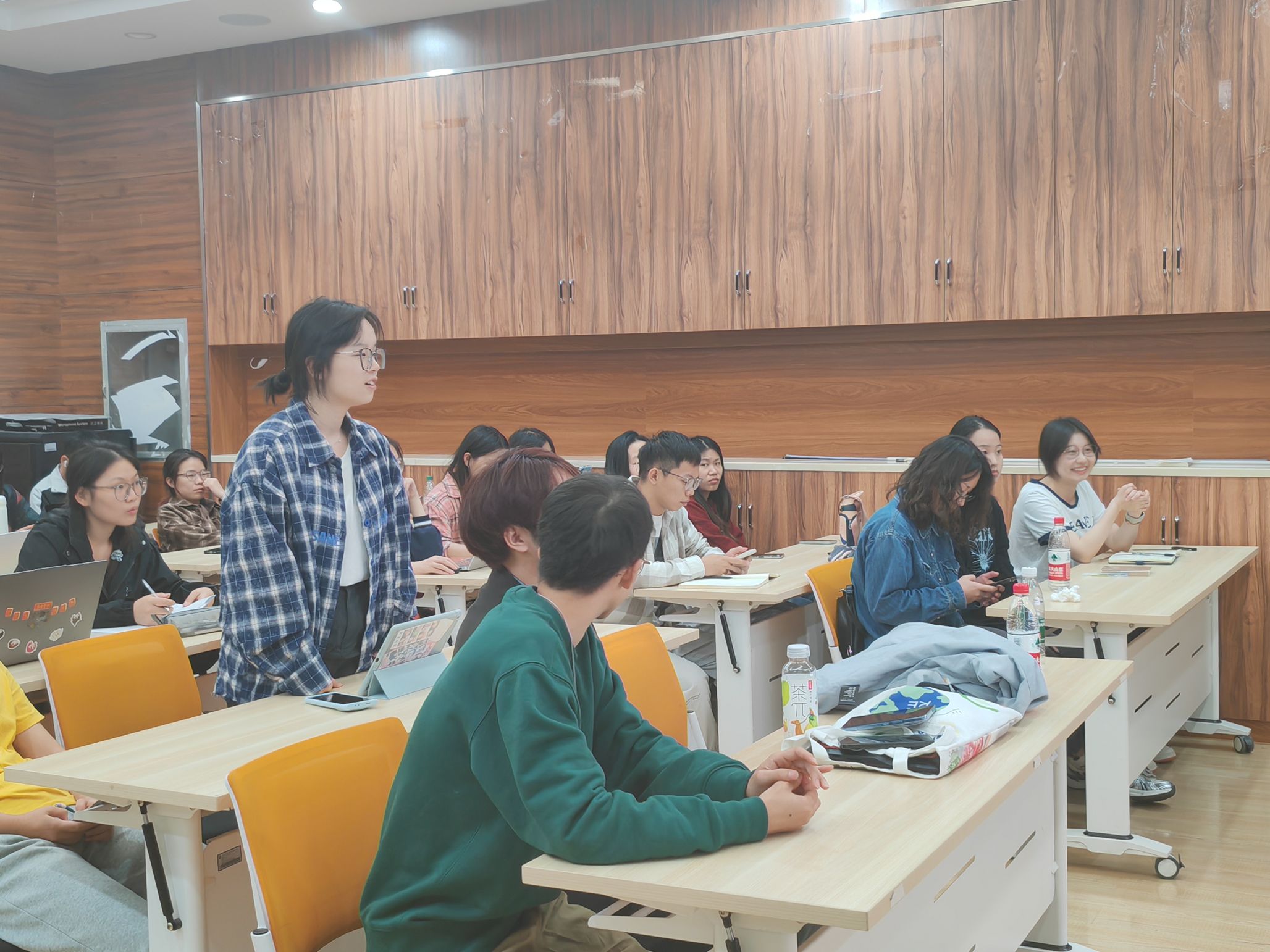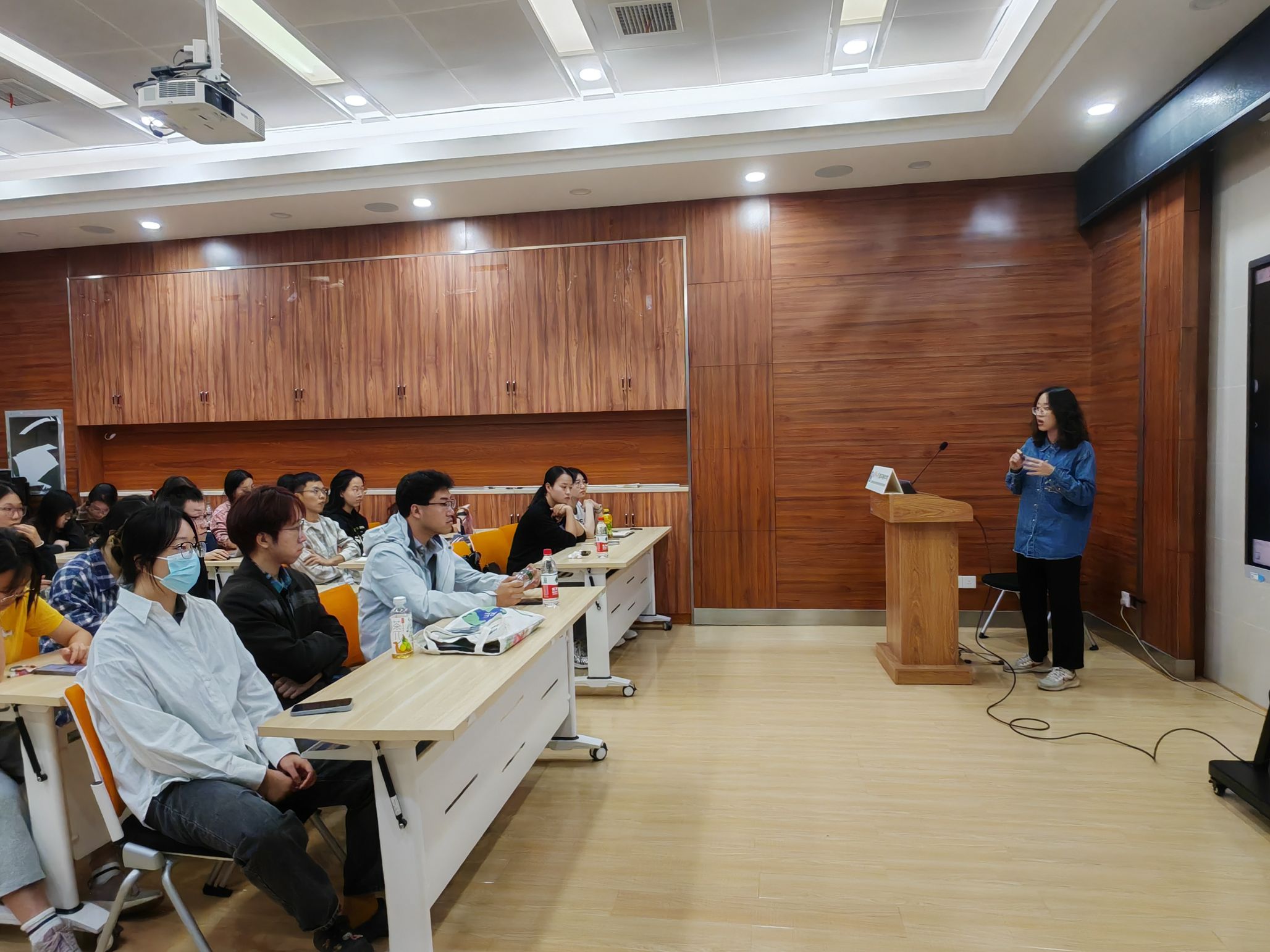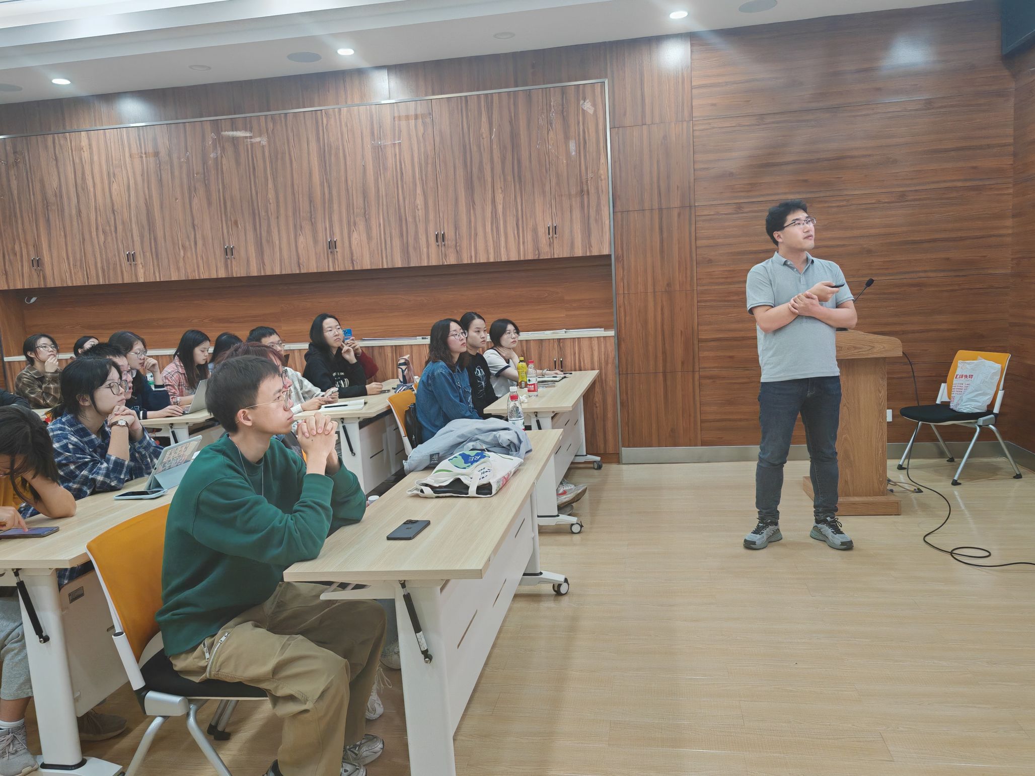 在提问环节,同学们积极参与,提出了多个与科研实践和写作相关的问题,气氛热烈。在场同学提问:如果我们有了一个初步的想法和框架,是直接去实践还是需要构建更细致的研究思路?曲鑫博士回答:你可以先去实践,即使想法比较简约。重要的是要验证这个思路的可行性,建议与老师和同学讨论。经验丰富的老师会给出宝贵的意见,帮助你判断这个想法是否能够继续推进。如果老师觉得可行,那就可以开始实验,并在实践中逐步丰富你的思路。另一名同学提问,科研中如何处理老师认为缺乏科学价值的研究?曲鑫博士回答:科学价值有时需要从长远来看。如果你相信自己的研究潜力,继续探索下去是有意义的。即使现在看起来不具备科学价值,未来可能会有新的发现。始终保持开放的心态,对自己的研究保持信心。整个提问环节为同学们在科研与写作中遇到的实际问题提供了有效的解决思路。