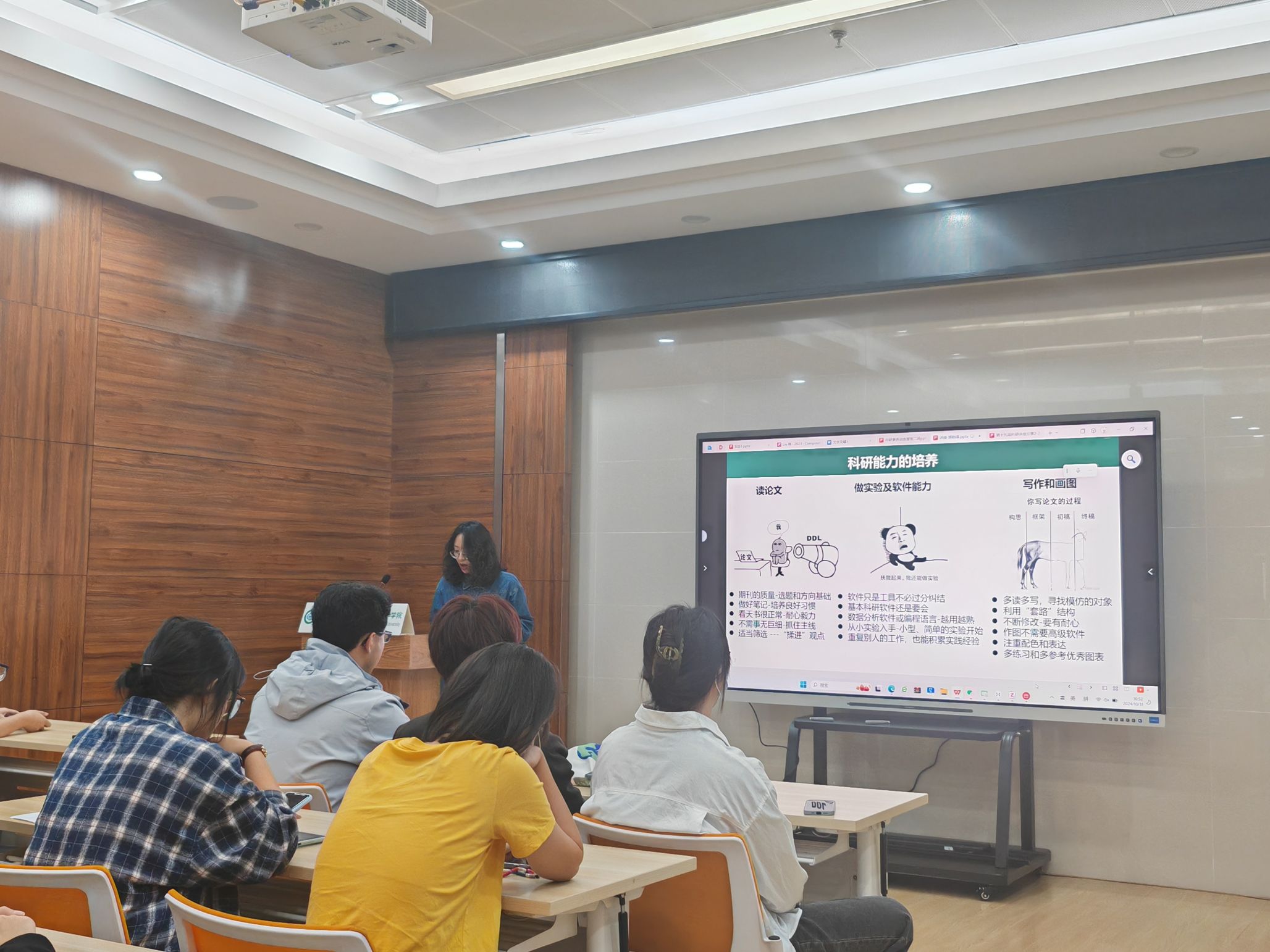 资环学院土地资源管理专业博士研究生郭韵琪和环境工程专业博士研究生曲鑫。两位嘉宾以“探索科研兴趣,聚焦论文写作”为主题,从不同的角度进行了分享,为初入科研领域的同学们奉献了一场丰富的知识盛宴。