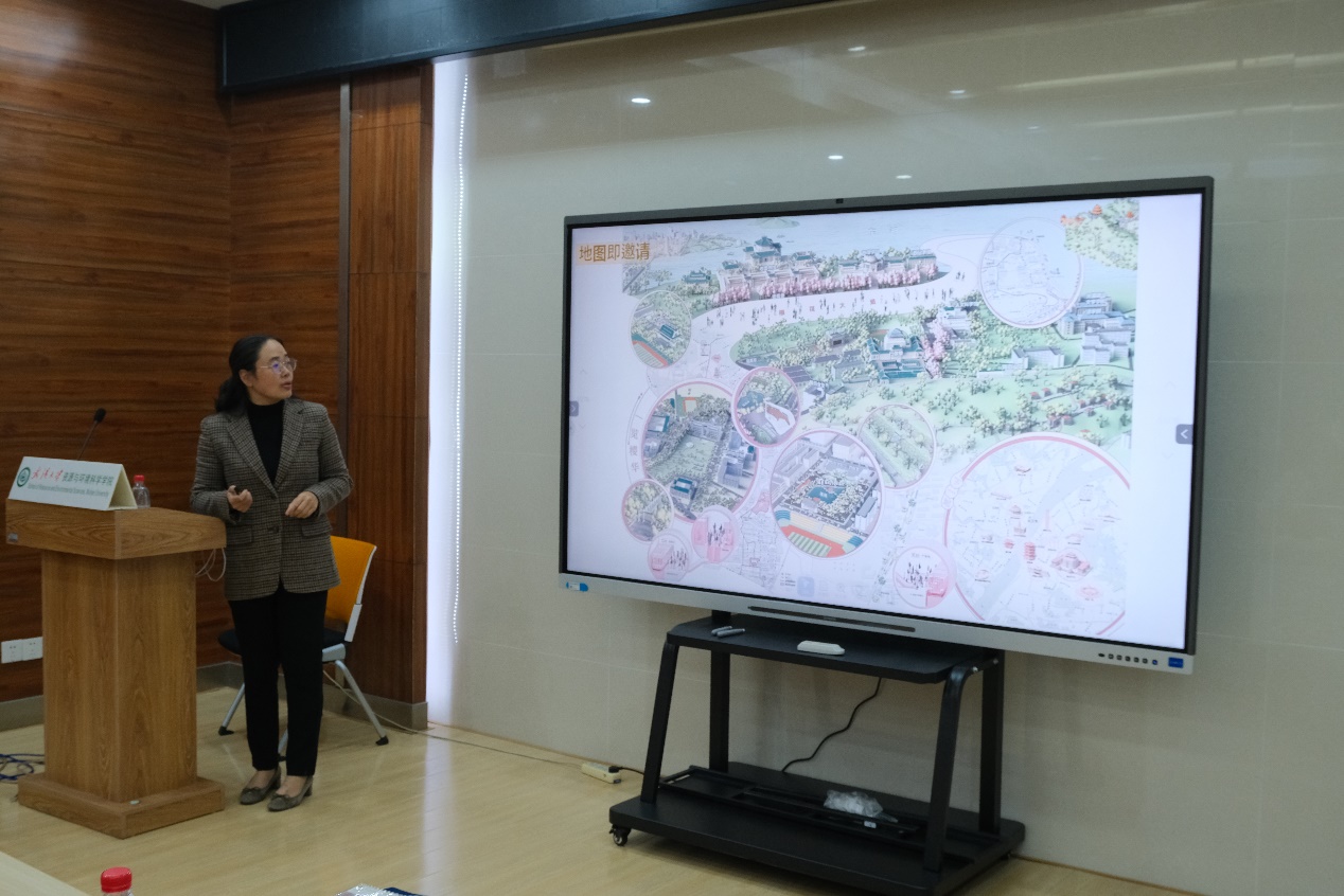 活动伊始,学院梅菲老师发表了热情洋溢的致辞。梅老师强调了美育在新时代高校教育中的重要意义,它是传承文明、增强文化自信、培养全面发展人才的关键力量。梅老师回顾了前几期活动在挖掘学科美育元素方面取得的成果,并为同学们介绍了本期主讲人翁敏教授,最后祝愿活动圆满成功。这一开场致辞为本次讲座营造了积极热烈的氛围,让大家对即将开启的地图探索之旅充满期待。