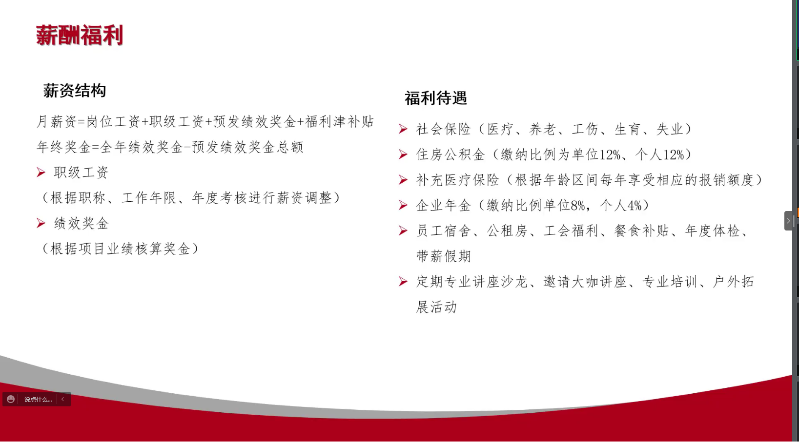 宣讲会开始后,各招聘单位依次向同学介绍了单位概况、工作内容、招聘岗位和相应的能力与专业要求,以及公司的薪资待遇、员工福利和职业晋升通道等情况。
