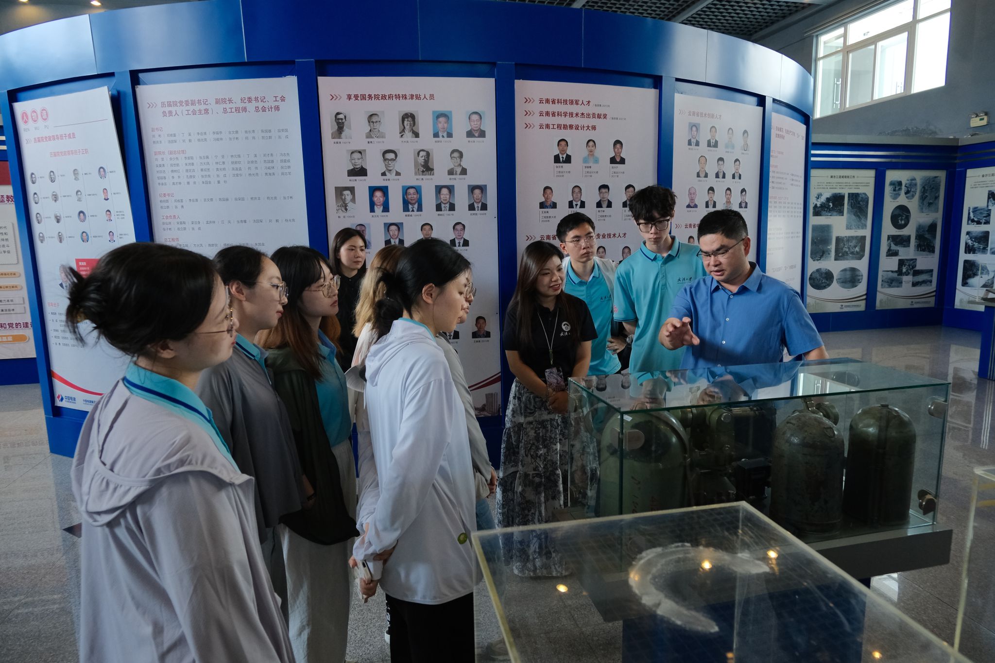 2024年7月18日下午,实践调研团队来到了中国电建集团昆明勘测设计研究院有限公司(以下简称“中国电建昆明院”)。在校友闻平(现任人力资源部主任)的带领下参观了中国电建昆明院的院史馆。团队成员全面了解了昆明院自创立以来的历史变迁、业务范围变革、核心技术创新以及一系列具有里程碑意义的工程项目,感受到其在国家水电能源及基础设施建设等领域的重要贡献与宏伟蓝图。
