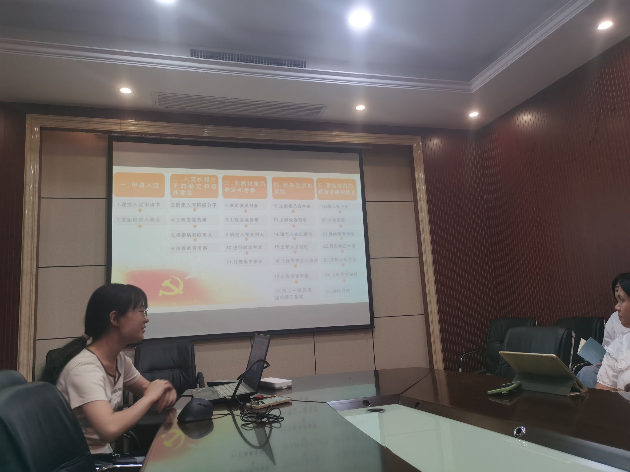 会议第二项,入党流程及问题解答。支部书记高灵飞同志对入党流程以及重要时间节点进行了详细的介绍。着重介绍了从递交入党申请书、成为入党积极分子、发展对象、预备党员到党员转正等一系列阶段中同志们需要进行的培训和考察以及各阶段的发展材料。