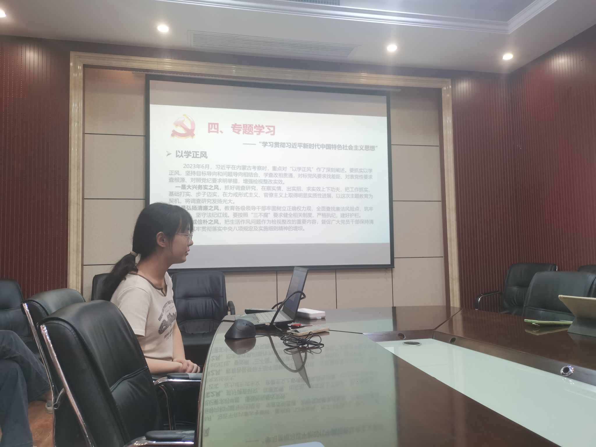 会议第四项,专题学习。在支部书记高灵飞同志的带领下,开展了“学习贯彻习近平新时代中国特色社会主义思想”的专题学习,深入学习了习近平总书记关于以学铸魂、以学增智、以学正风、以学促干的12条具体要求。学习结束后,与会同志交换了学习心得,纷纷表示受益匪浅。