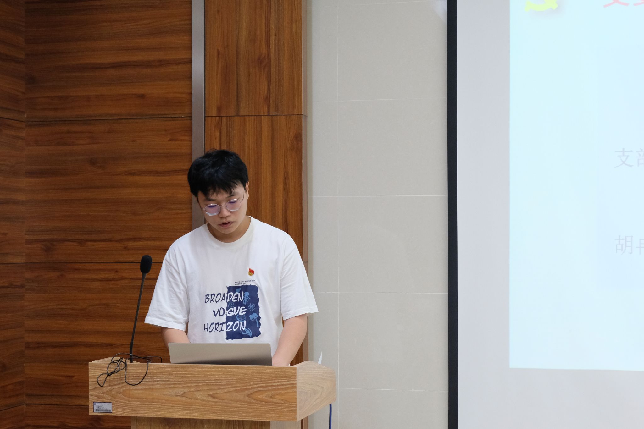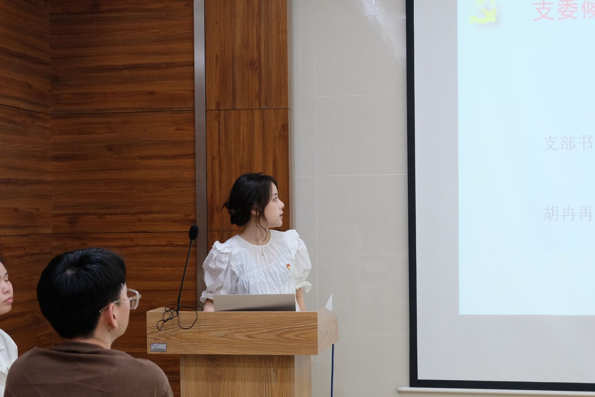 会议第二项,支部委员调整。胡冉再琪、邵乘霖、毛贯洲、张弛、李金海五位支委候选人分别介绍了个人情况并阐述了未来工作规划。由正式党员进行无记名投票并现场公布投票结果,经表决,五位同志得到了党支部成员的一致认可。依据投票结果,由胡冉再琪同志担任新任党支部书记、邵乘霖同志担任新任党支部副书记、毛贯州同志担任党支部组织委员、张弛同志担任党支部宣传委员、李金海同志担任党支部纪检委员。