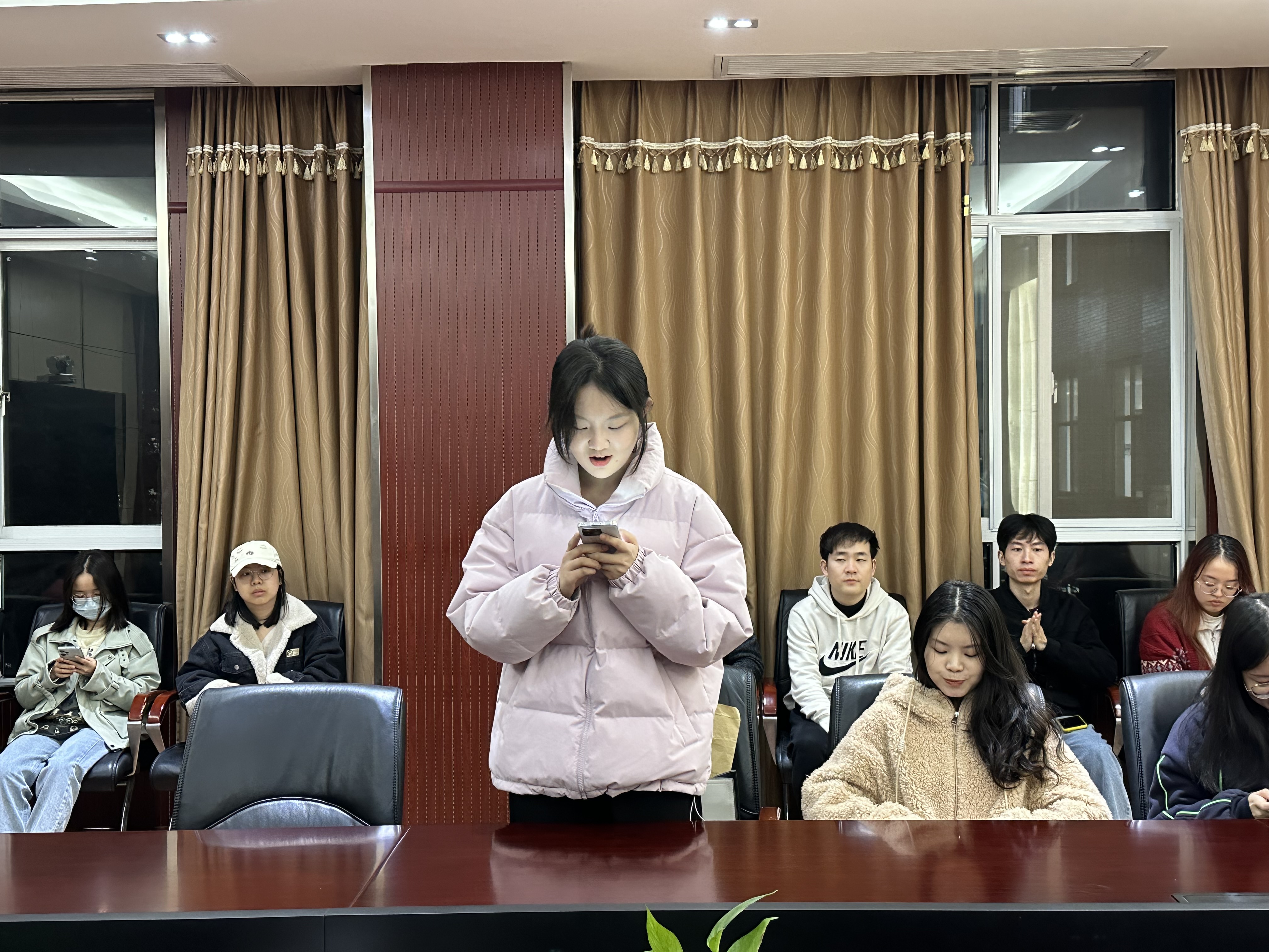 会议第二项,讨论程宇恒同志的转正问题。首先由预备党员程宇恒同志介绍其在预备期内的思想、工作情况,申请转正。程宇恒同志表示,预备党员期间,自己积极参与党支部活动,努力学习党的政治思想和理论知识,不断提升自我党性修为,扎根专业,拓展外延,不断强化自身理论素养,向党组织靠拢。然后,入党培养人杨显曾和王胜男同志对程宇恒同志的教育经历、学习、思想情况等进行了介绍,充分肯定了其在生活与思想上的进步,推荐程宇恒同志转正。