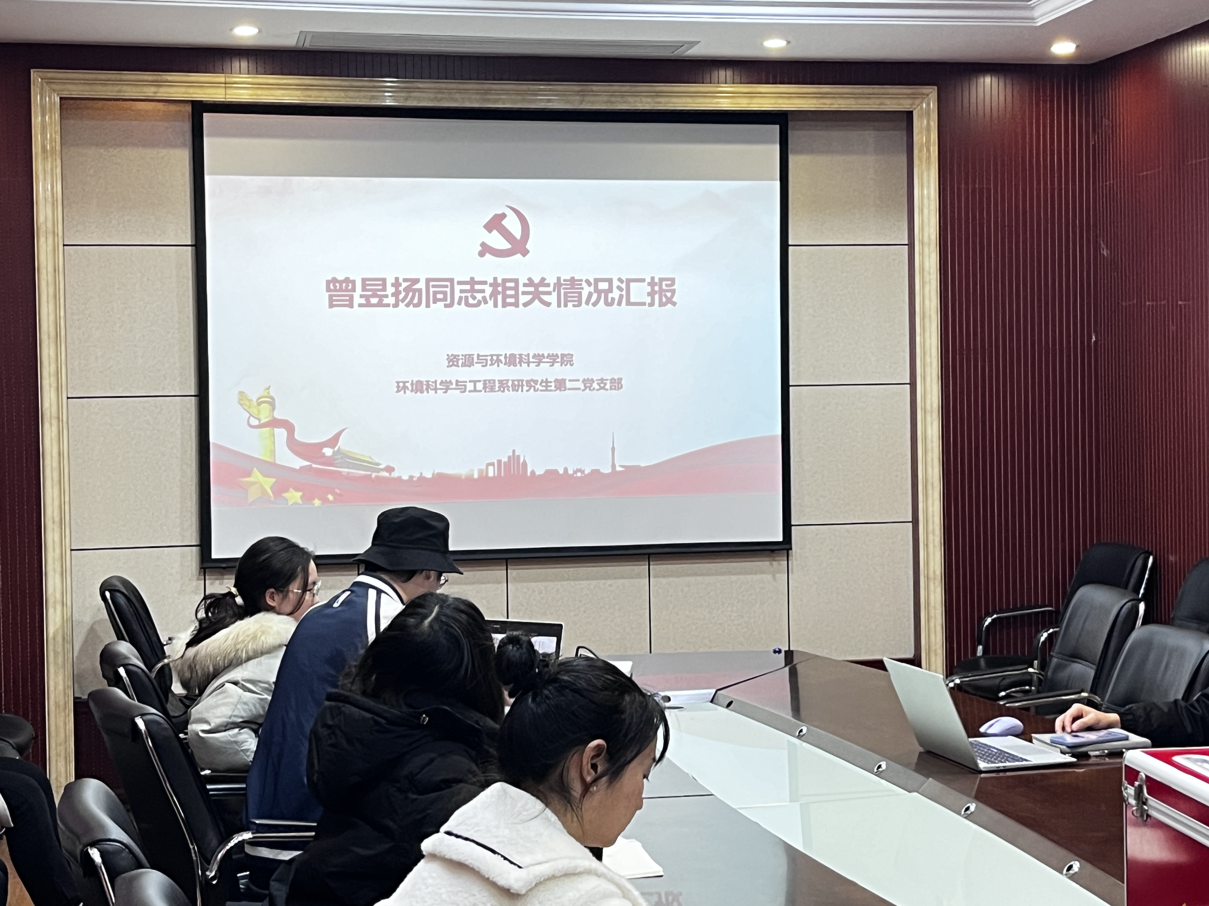 会议第一项,提及党支书张梦琪同志于2023年11月27日12:00,院办504室已召开环境科学与工程系研究生第二党支部支委会,商讨确定曾昱扬同志为预备党员事宜。