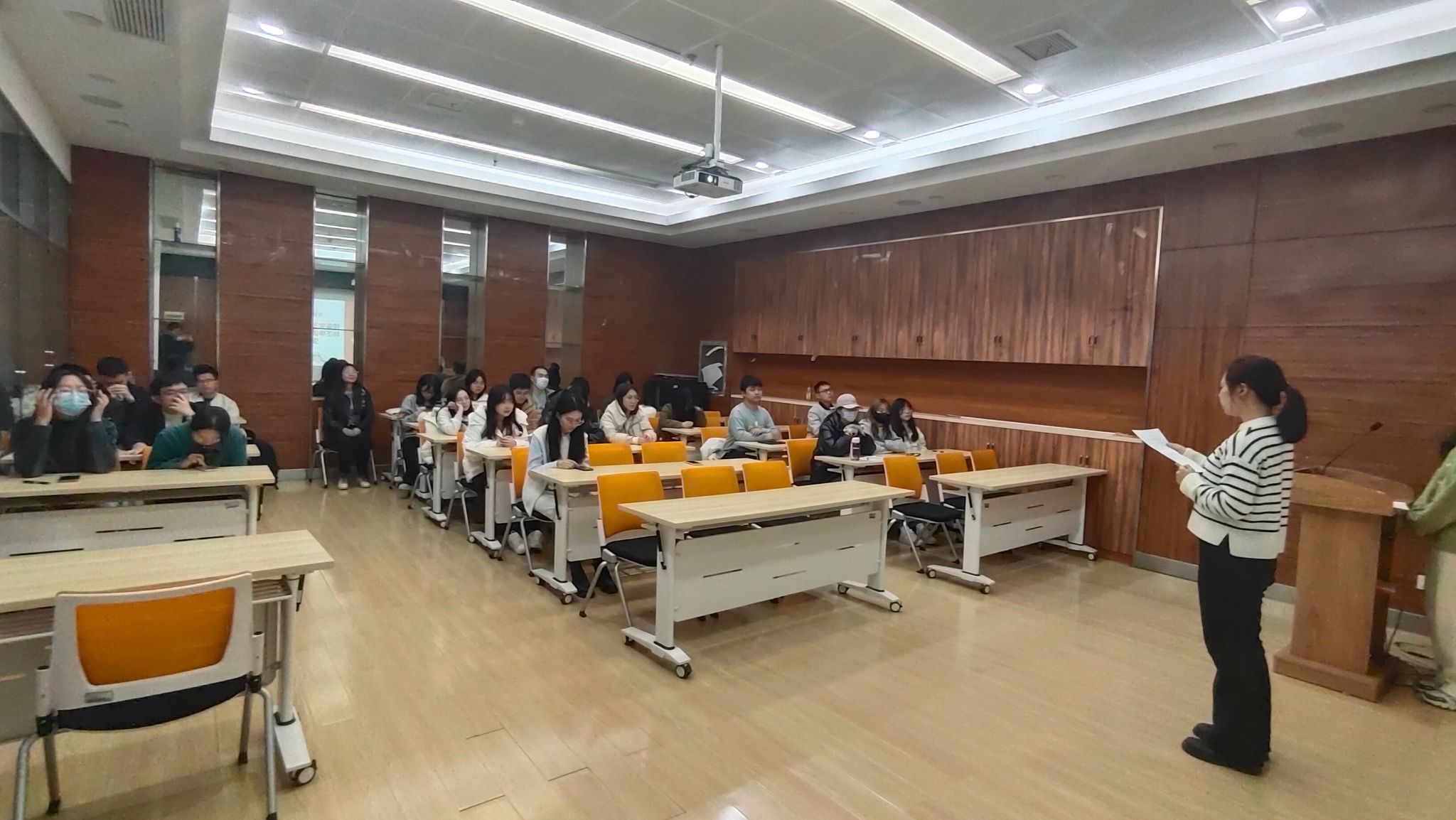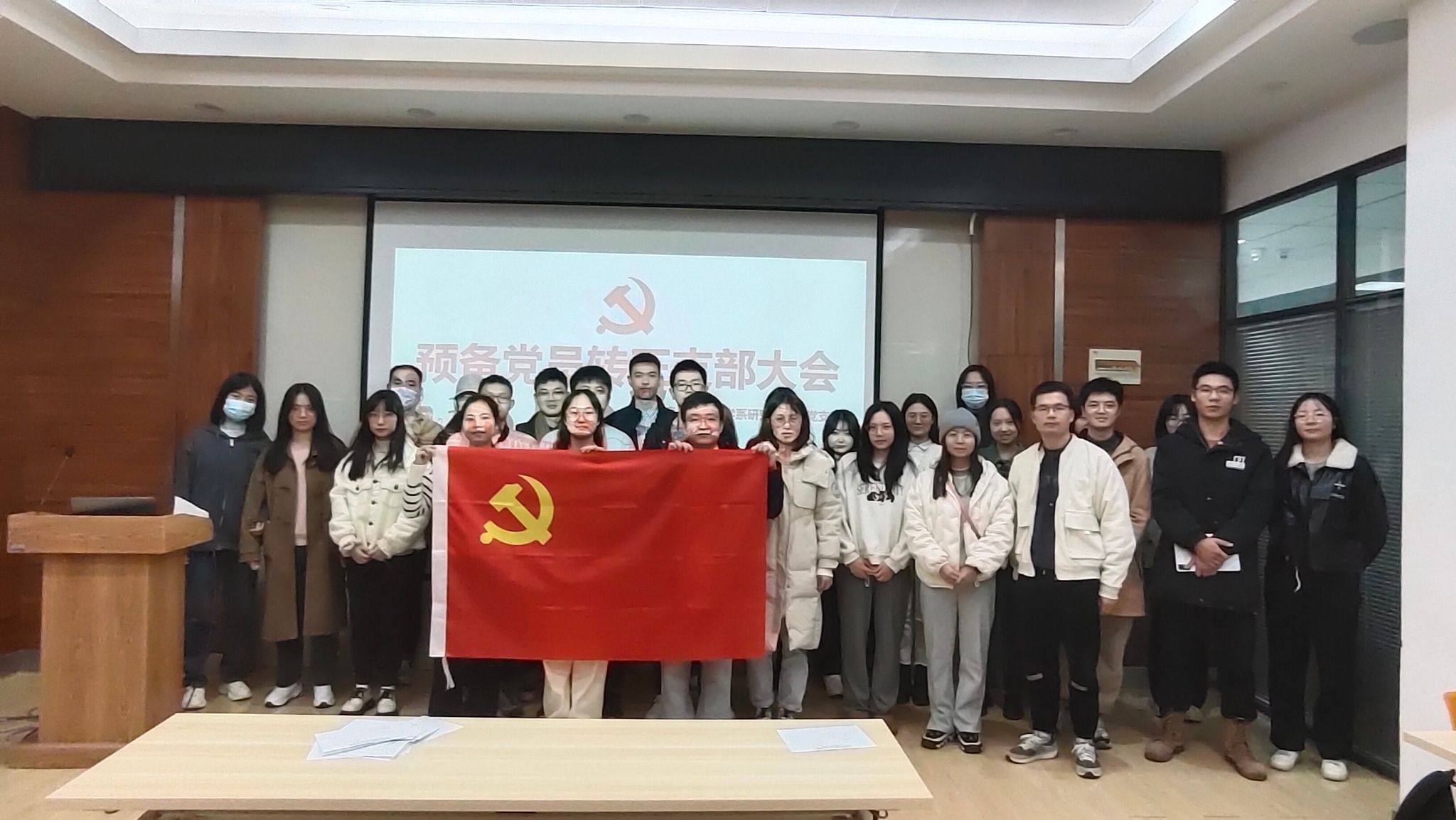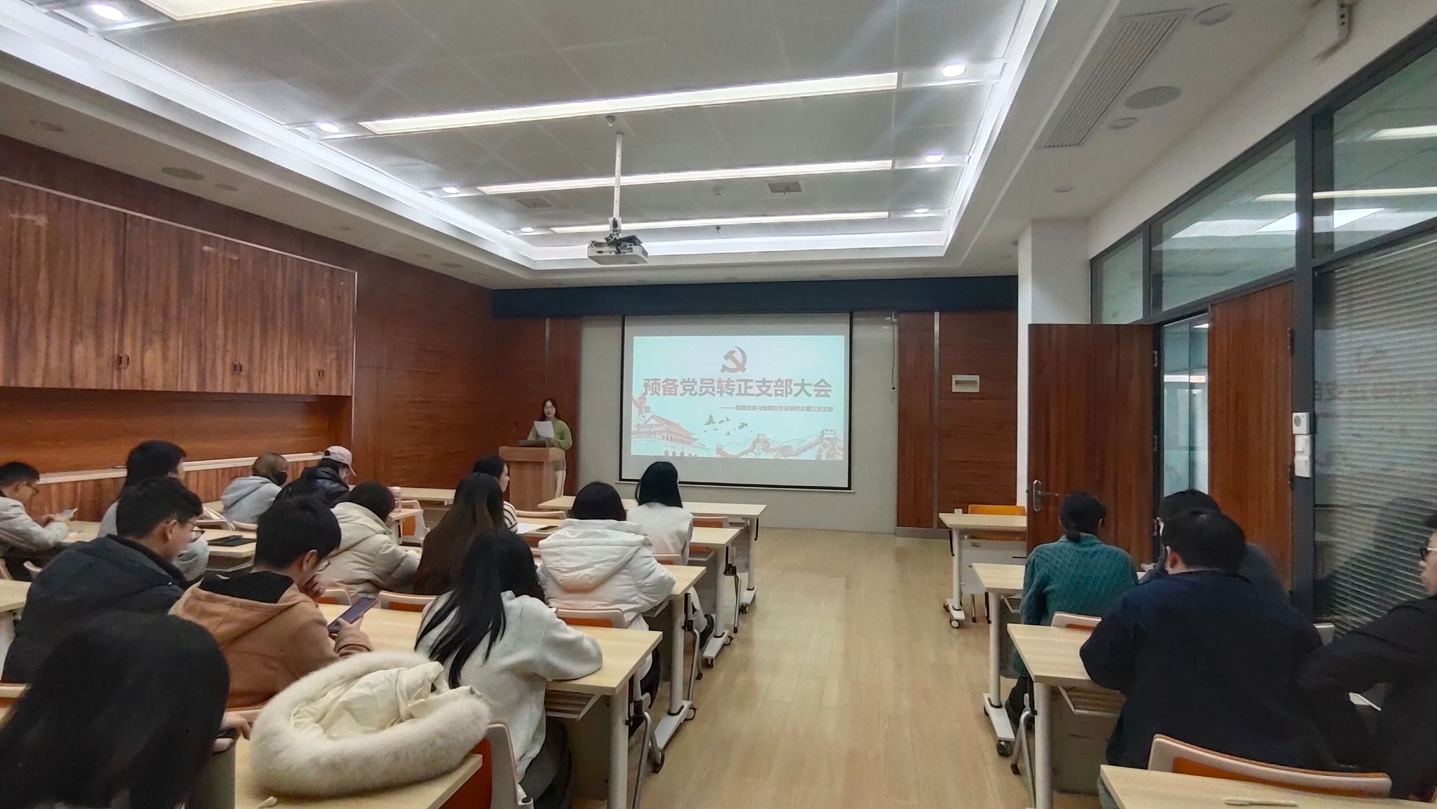 2023年11月28日下午16:40,于电脑城429会议室,地理信息与地图科学系研究生第三党支部举行预备党员转正支部大会暨“感悟思想伟力,感受文化魅力”党日主题活动。本次会议由支部书记喻韩同志主持,支部党员、预备党员及入党积极分子参与此次会议。本次会议应到正式党员30名,实到会正式党员25名,有表决权的到会人数超过应到会有表决权人数的半数,符合规定人数。