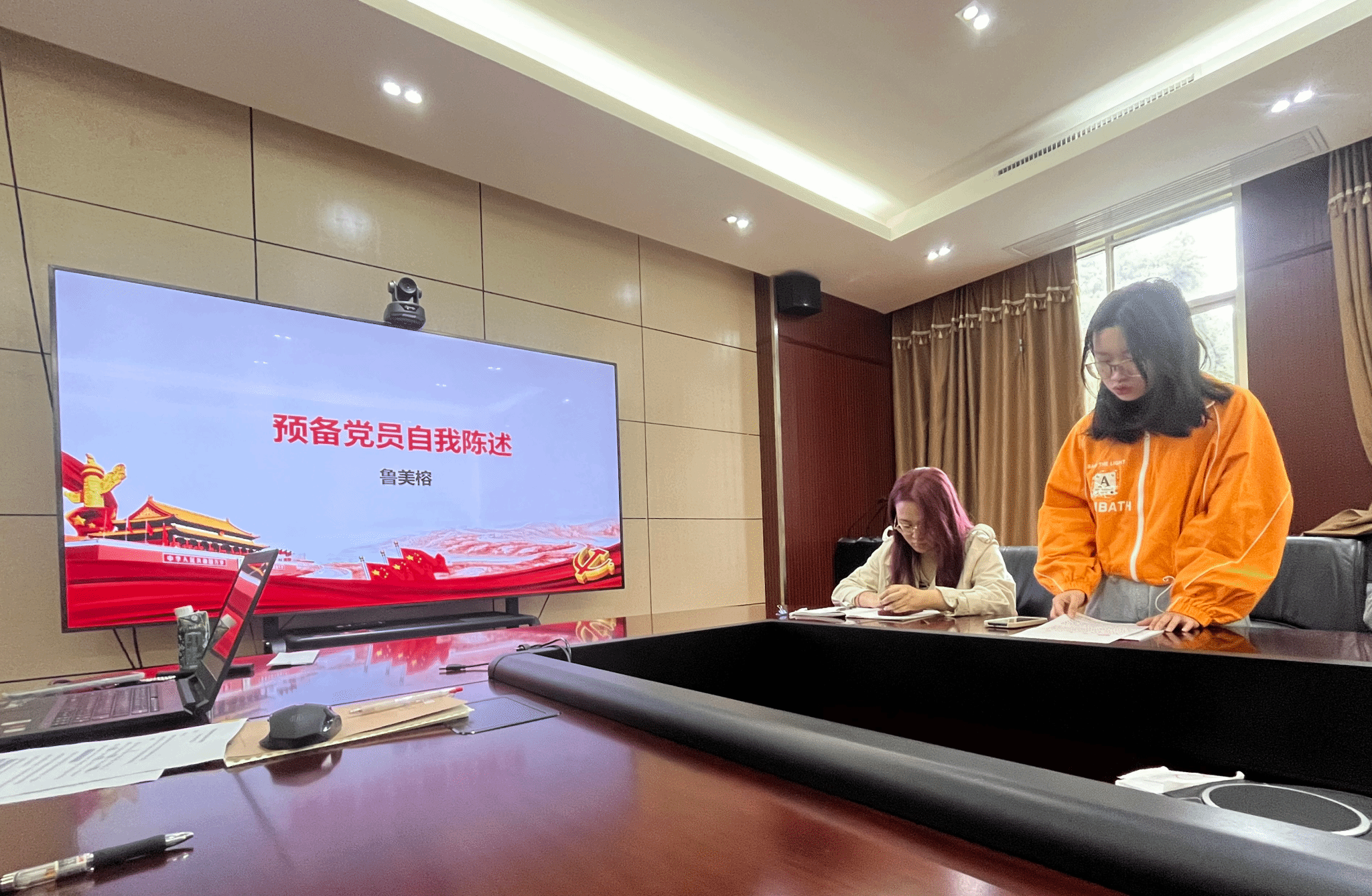会议第一项,讨论鲁美榕同志的转正问题。预备党员鲁美榕同志提出转正申请,就自身情况、入党动机、学习情况等向党组织进行了汇报。经支部委员会和与会党员陈滢、周贝贝同志发表意见后,由正式党员进行无记名投票表决,李雨珊和王丹同志负责本次投票的监票计票,现场公示投票结果,同意10票,反对0票,弃权0票。经表决,鲁美榕同志得到党支部大会的一致认可。刘邱源同志宣布支部决议,同意鲁美榕同志的转正申请。
