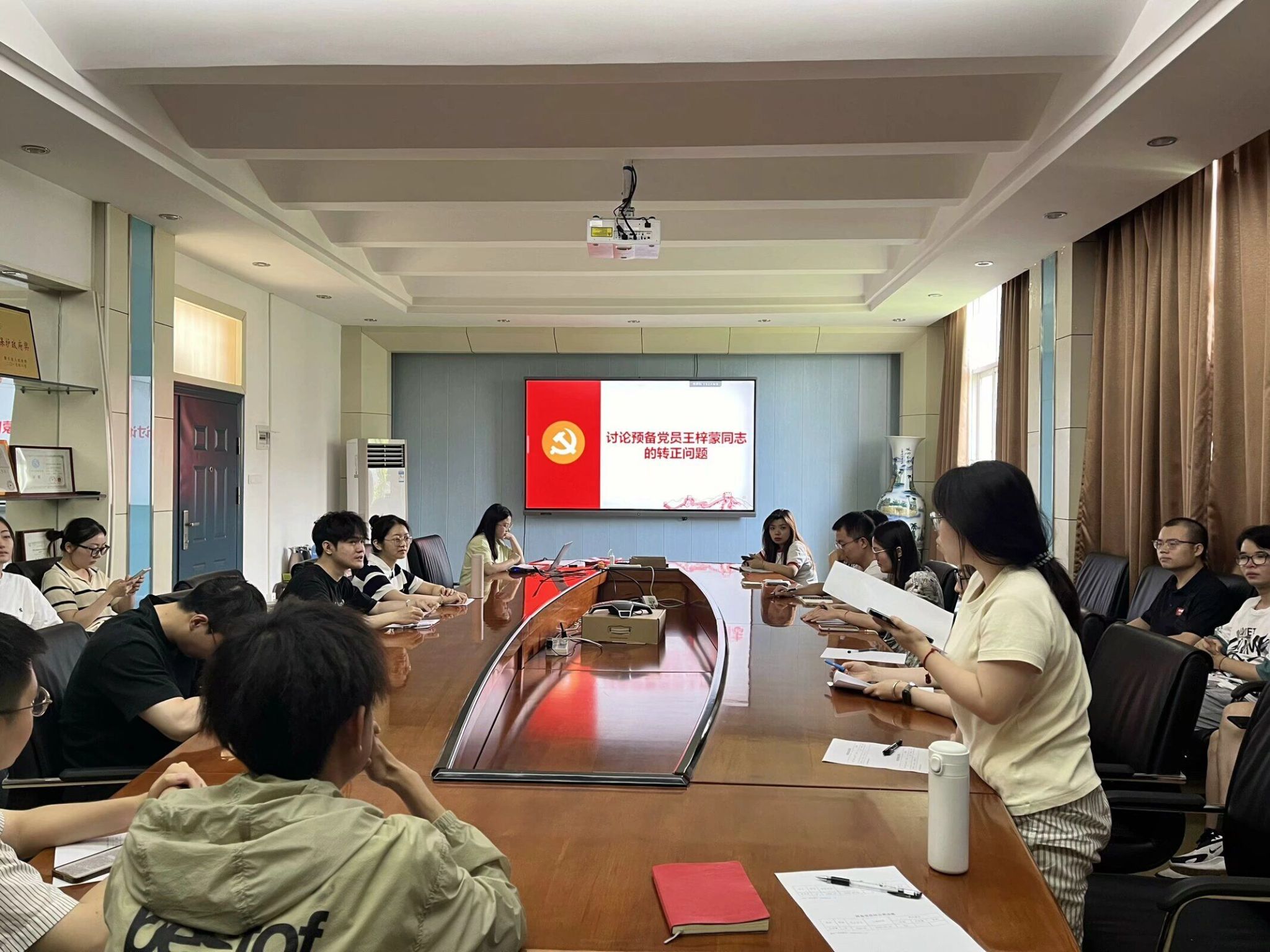 最后,院团委副书记梅菲老师发表讲话。梅菲老师充分肯定了本次预备党员转正支部大会的规范流程和支部成员的踊跃参与态度,并赞扬本次主题党日活动内容详实丰富,能激励所有到会成员在新征程中不忘初心,脚踏实地,踔厉奋发,勇毅前行,提高纪律意识、加强自我约束,以优异的成绩向党交出一份满意的答卷。