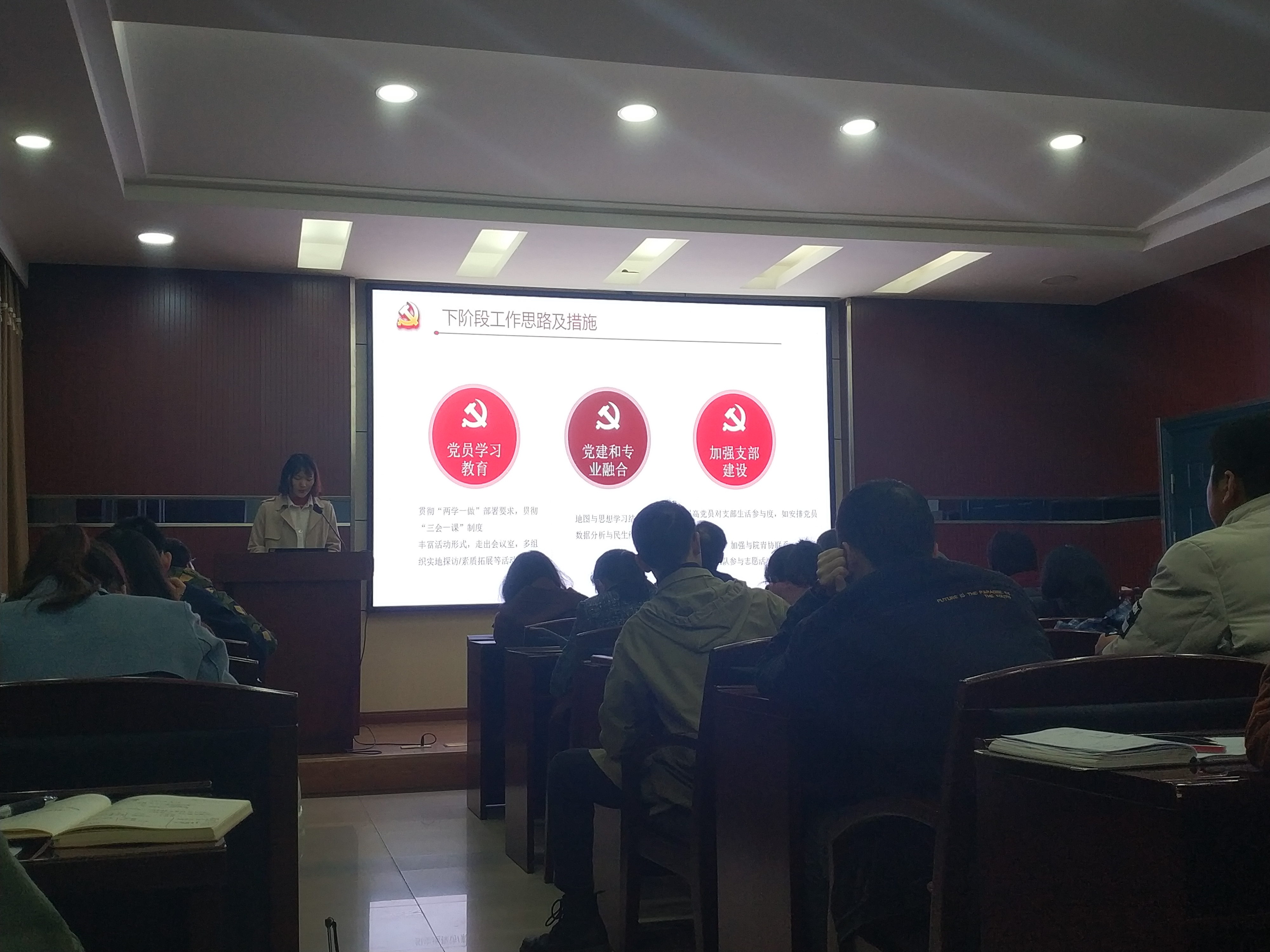 会议第三项。学院党委书记刘兴国,述职大会进行总结发言。指出,本次会议既是一次成功的述职会,也是一次成功的学习会、交流会。刘书记对于2020年度支部工作的职责把握和创新做法予以肯定,并提出5点建议:(1)吸纳积极分子参与讨论学习,凝聚群众,团结同学;(2)在坚持学习马列主义、党的方针政策和创新理论的同时,积极学习科学技术、文化,维护学术道德规范,营造良好学风;(3)正确认识“三会一课”和主题党日的关系;(4)结合建党100周年进行贯彻全年的党史学习教育;(5)加强党员管理,切实做好党员发展工作。至此,本次述职评议大会顺利结束。