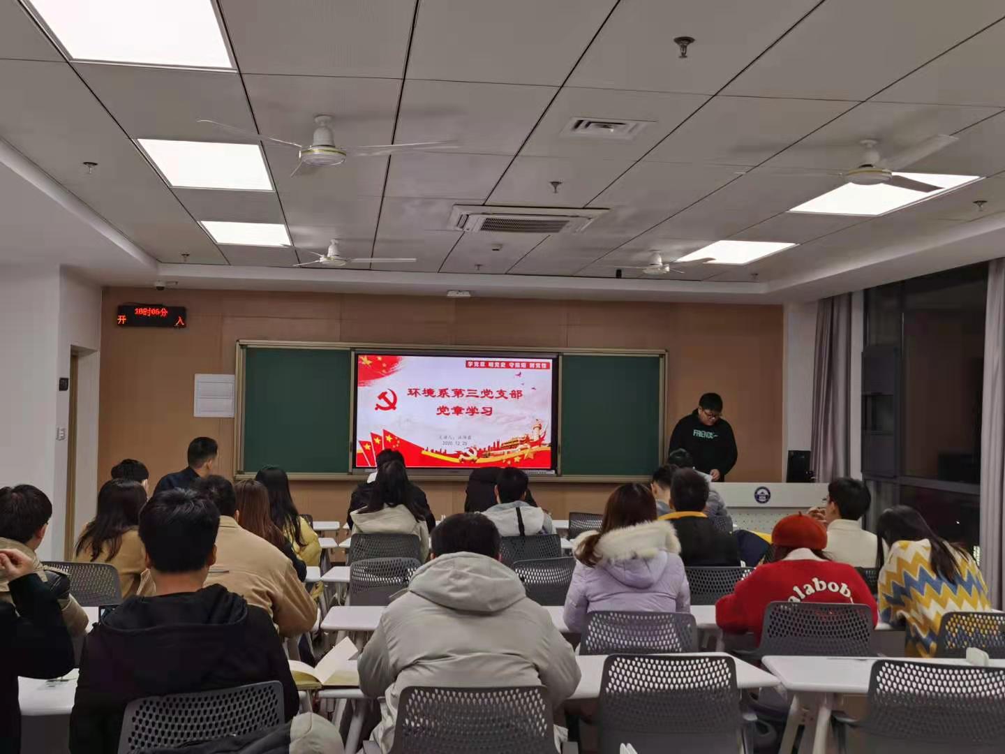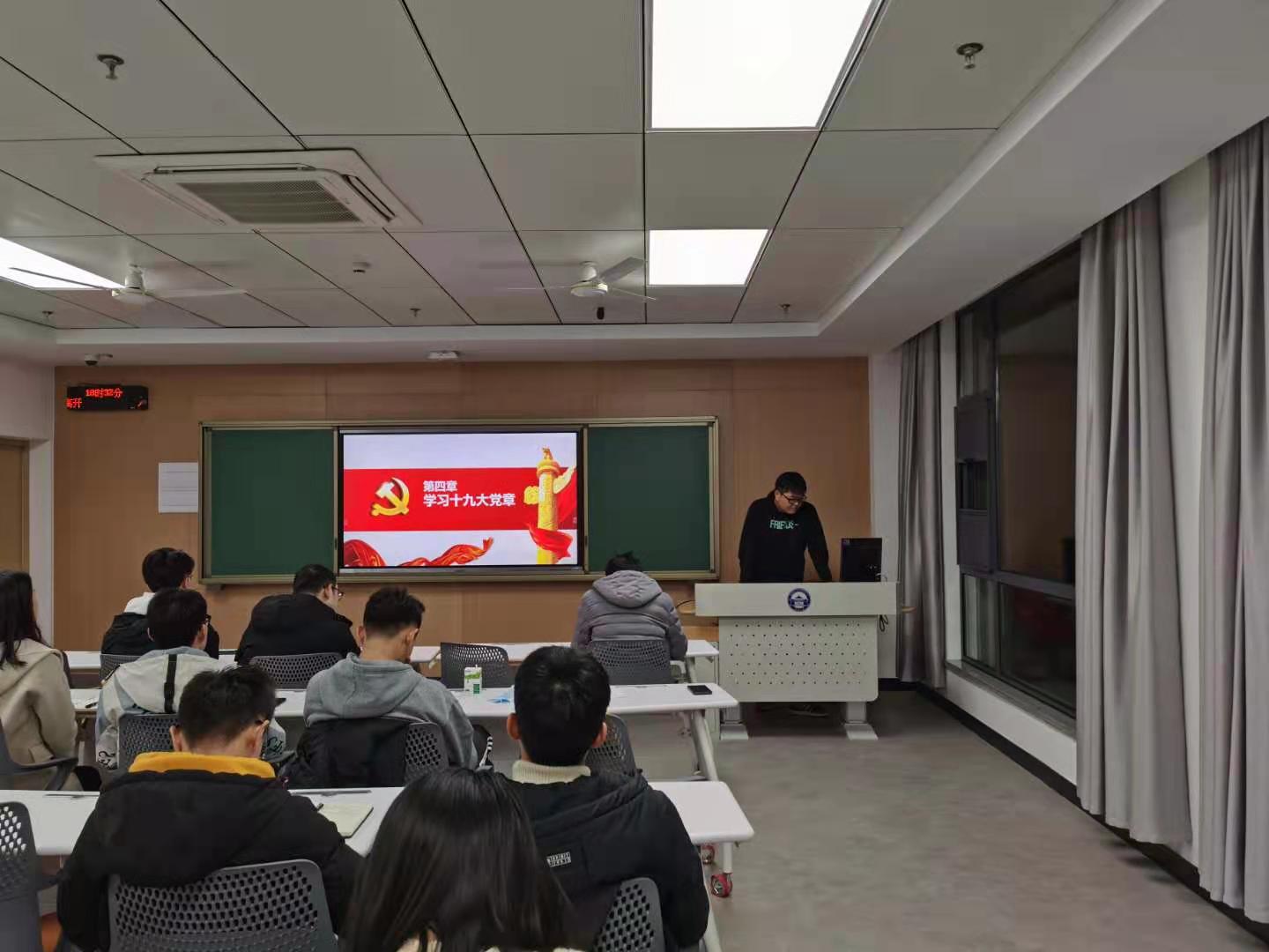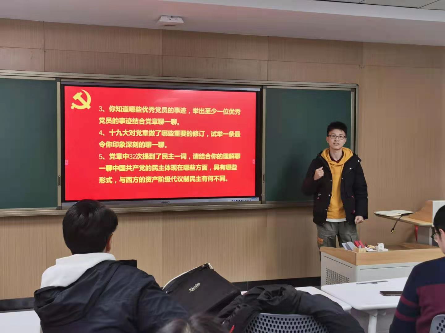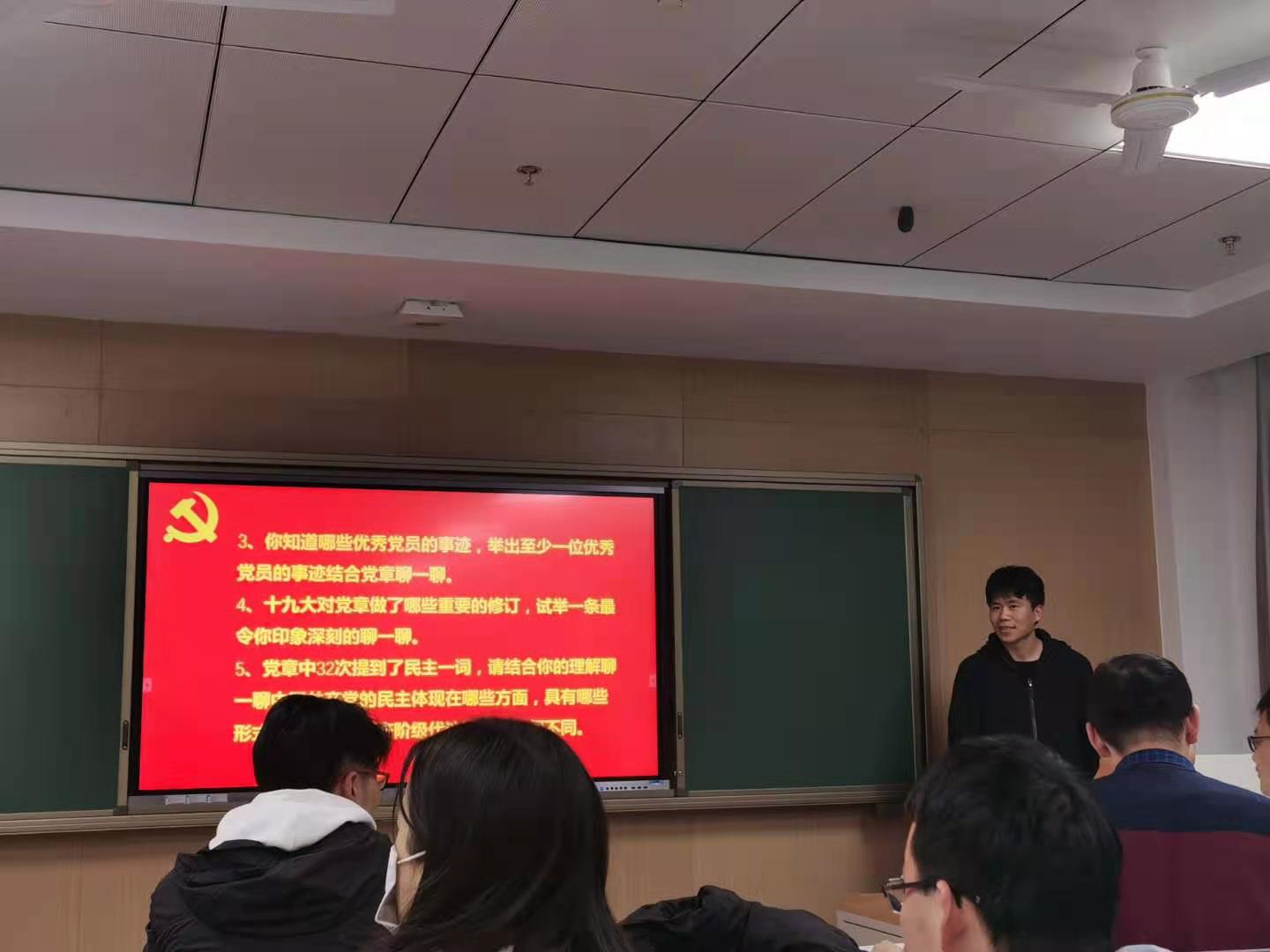 工学部新主教举行了党章专题学习交流活动,本次活动由党支部组织委员石昊同志主持,参会人员包括党员、发展对象和积极分子共计25人。会议分为四部分:一,党支部副书记汪沛霖同志作党章知识主讲;二,党支部宣传委员徐笑琪同志作补充;三,老王论坛