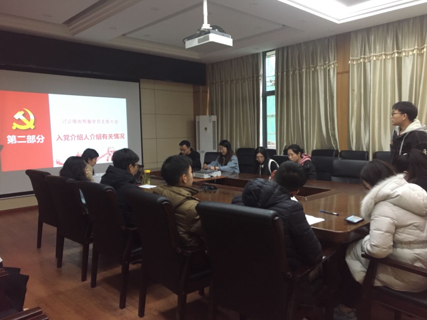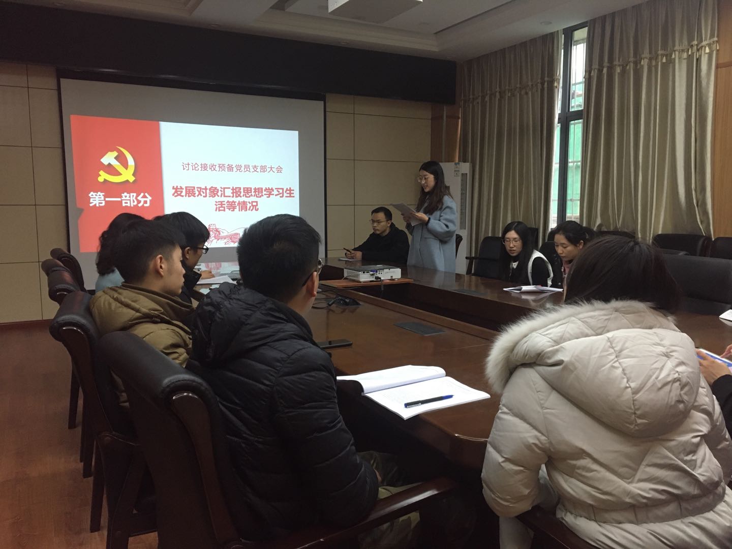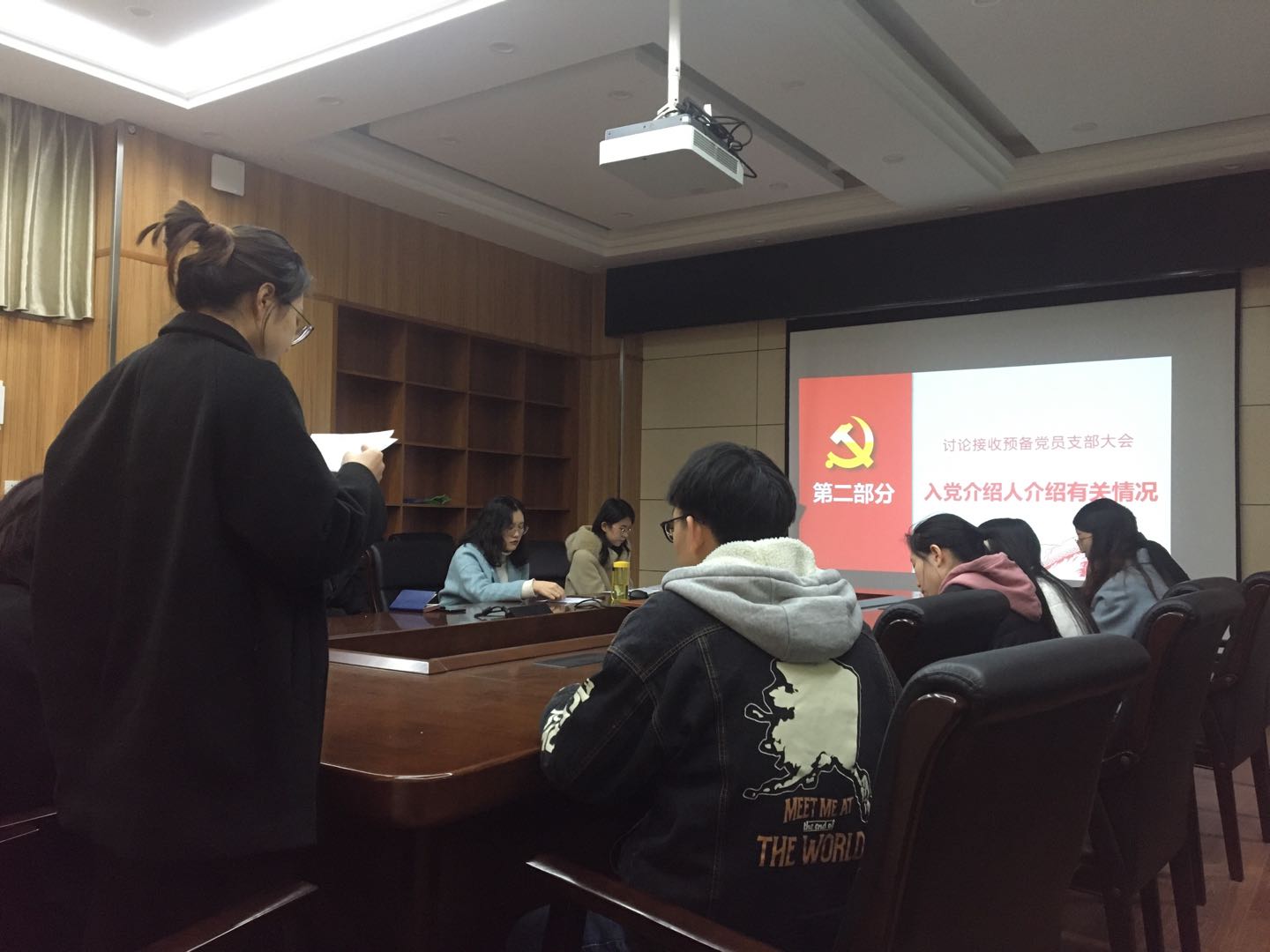 党支部书记王豪杰同志代表支委会向大会报告了对两位同志的考察情况以及综合政治材料审查情况,与会的党员对以上两位发展对象是否符合预备党员条件发表了意见。由宣传委员张金瑶同志和纪律委员雷晓薇同志担任计票人和监票人,以正式党员无记名投票方式对发展对象进行投票并现场逐一公布投票结果。最终通过一致表决,两位同志皆以14票同意、0票否决、0票弃权的投票情况接收两位同志为预备党员。