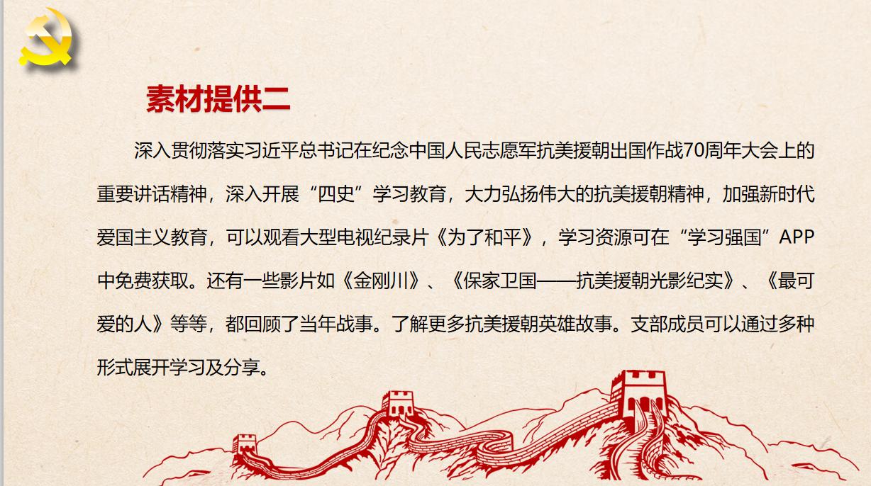 接着,刘家男对近期的素材进行梳理,主要包括围绕巩固深化“不忘初心、牢记使命”主题教育成果,开展一次党支部主题党日活动,重点学习中共中央办公厅《关于巩固深化“不忘初心、牢记使命”主题教育成果的意见》;深入贯彻落实习近平总书记在纪念中国人民志愿军抗美援朝出国作战70周年大会上的重要讲话精神,深入开展“四史”学习教育,大力弘扬伟大的抗美援朝精神,加强新时代爱国主义教育;学习贯彻党的十九届五中全会精神,要清楚党的十九届五中全会的重大意义,清楚习近平总书记在全会上的重要讲话精神,清楚决胜全面建成小康社会取得的决定性成就,清楚党中央制定“十四五”规划和2035年远景目标的战略考量,清楚到2035年基本实现社会主义现代化的远景目标和“十四五”时期经济社会发展的方针原则、主要目标、重点任务,清楚全会提出的一系列新的重要思想、重要论断、重大举措,清楚实现宏伟目标必须坚持党的全面领导等等。