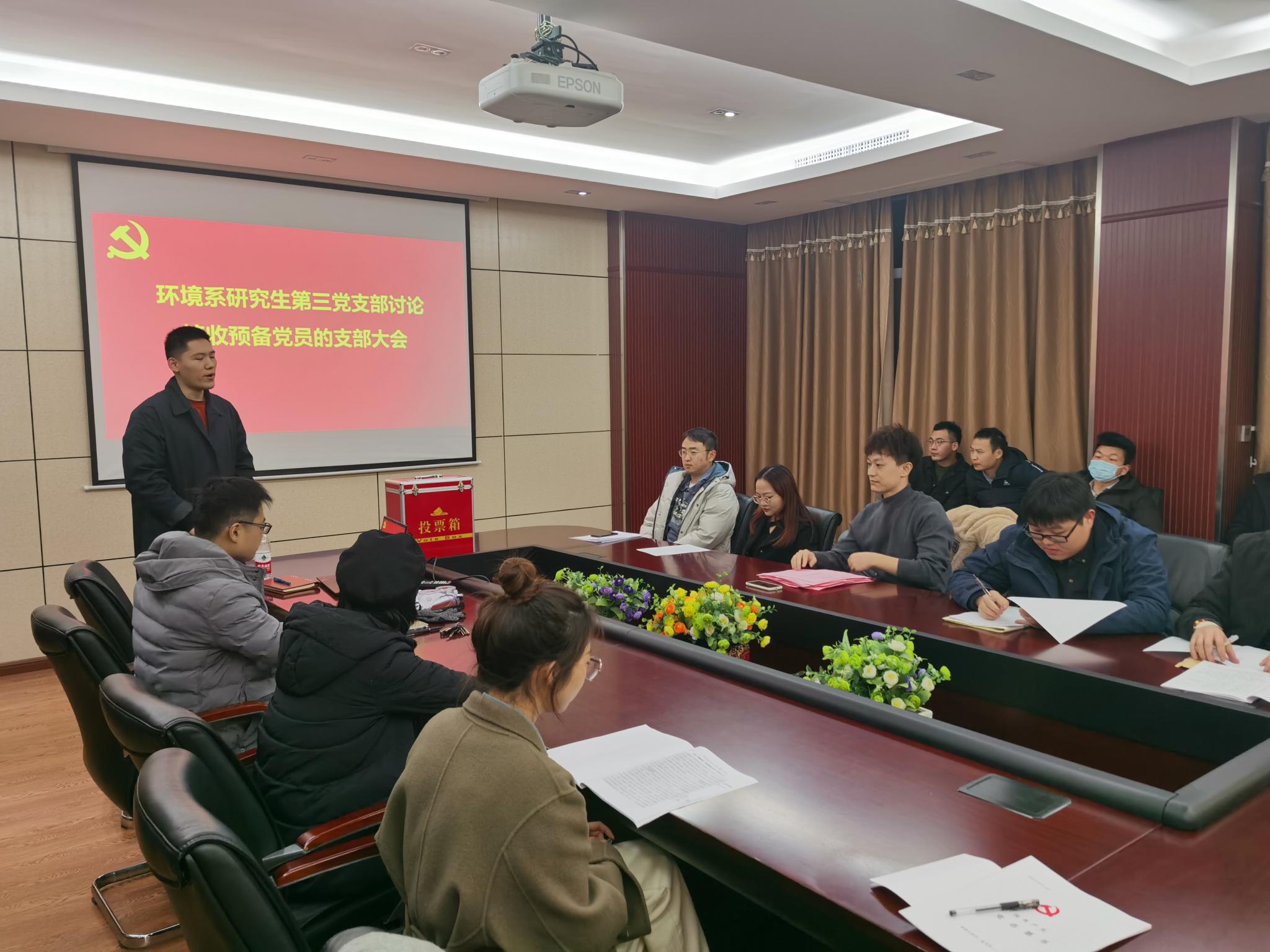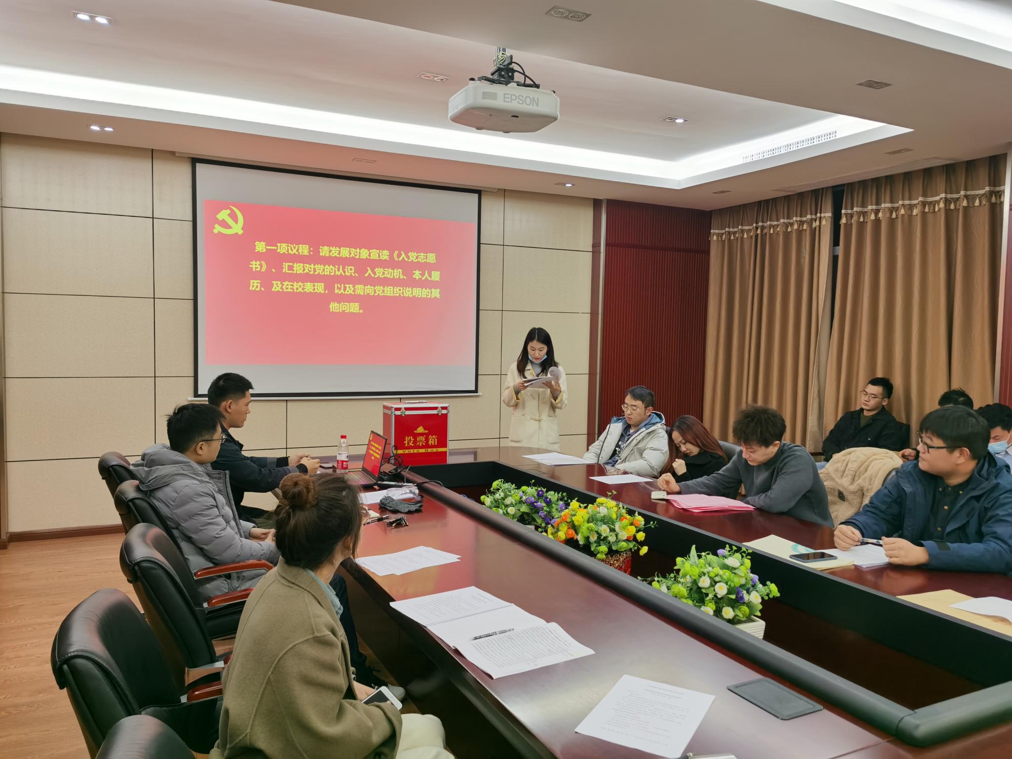 会议第一项,赵立坤等六位发展对象宣读《入党志愿书》,汇报对党的认识、入党动机、本人履历及在校表现,以及需要向党组织说明的其他问题。