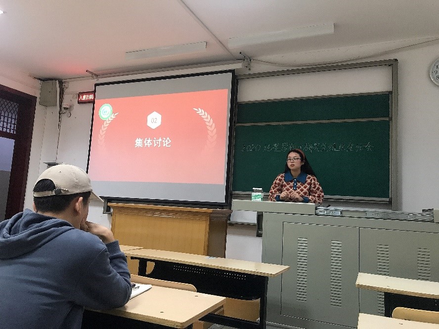 2020年11月6日,资环学院2020级地理学硕士研究生党支部于教1-204开展了以“巩固深化成果,践行初心使命”为主题的党日活动,组织支部12位党员同志学习《关于巩固深化“不忘初心、牢记使命”主题教育成果的意见》并进行交流探讨。