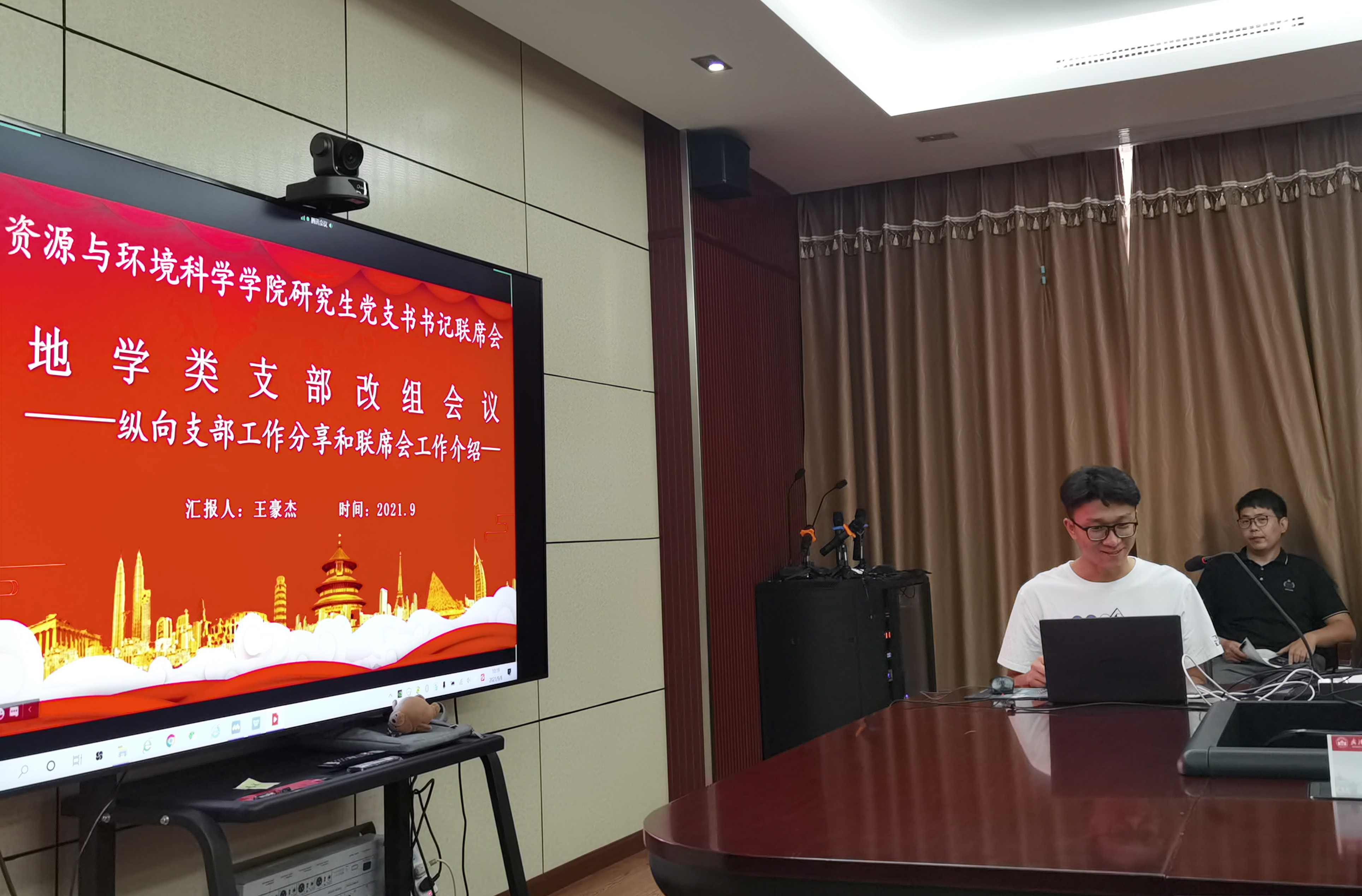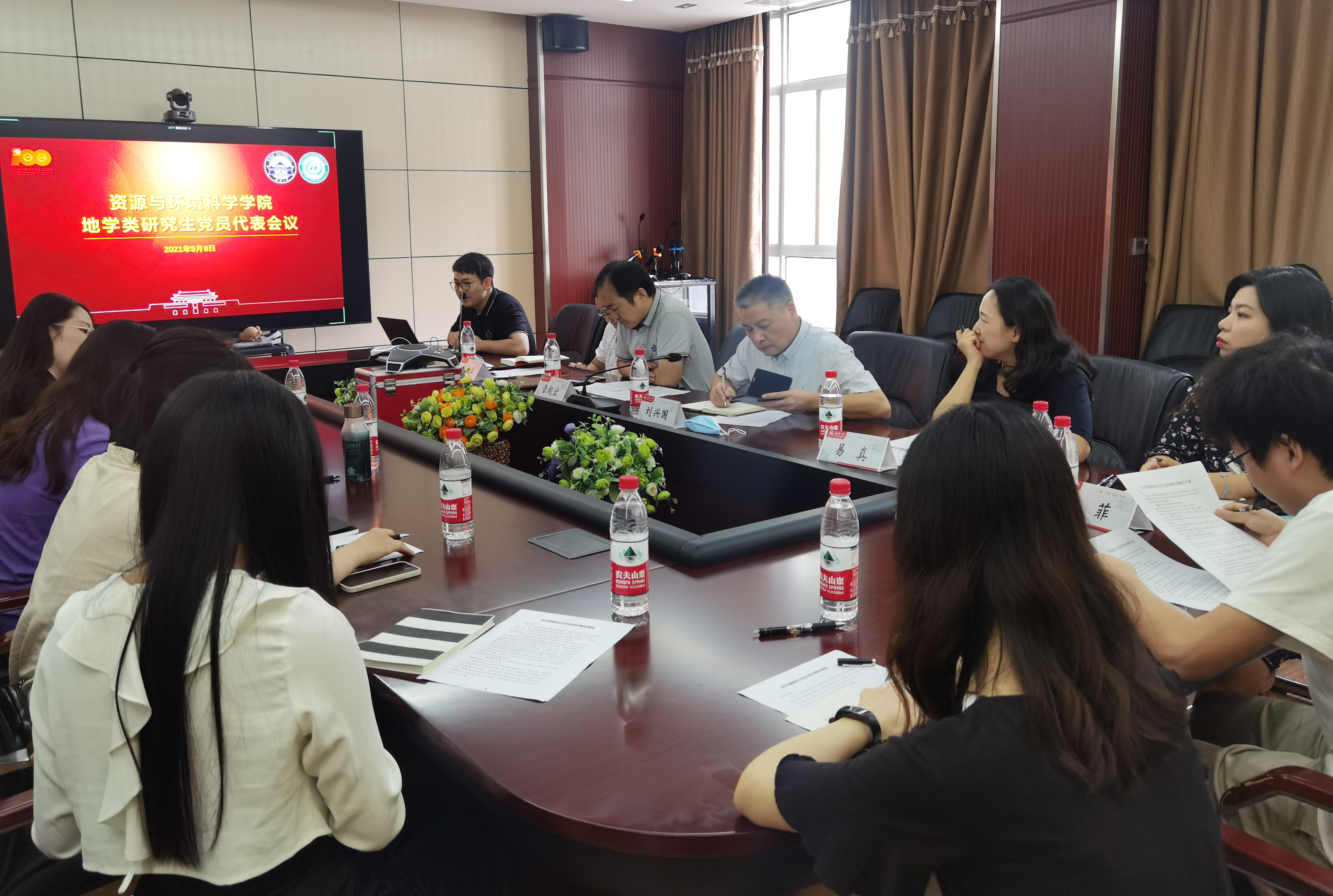 地学类研究生党员大会在学院320报告厅召开。院党委书记刘兴国、院党委副书记雷起宏、院党政办公室副主任易真、院研究生辅导员马丽华、梅菲、李韩,以及学院地学类研究生党员代表参会,其他党员线上观看了直播。会议由李韩主持。
