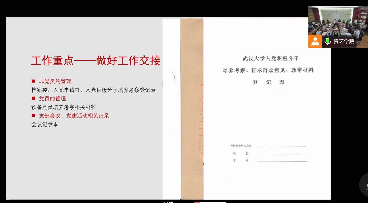 随后,易真对党支部工作重点进行讲解,要求调整后的支部应尽快掌握支部成员基本信息,同时做好工作交接,加强管理,并就近期主要工作安排进行了传达。