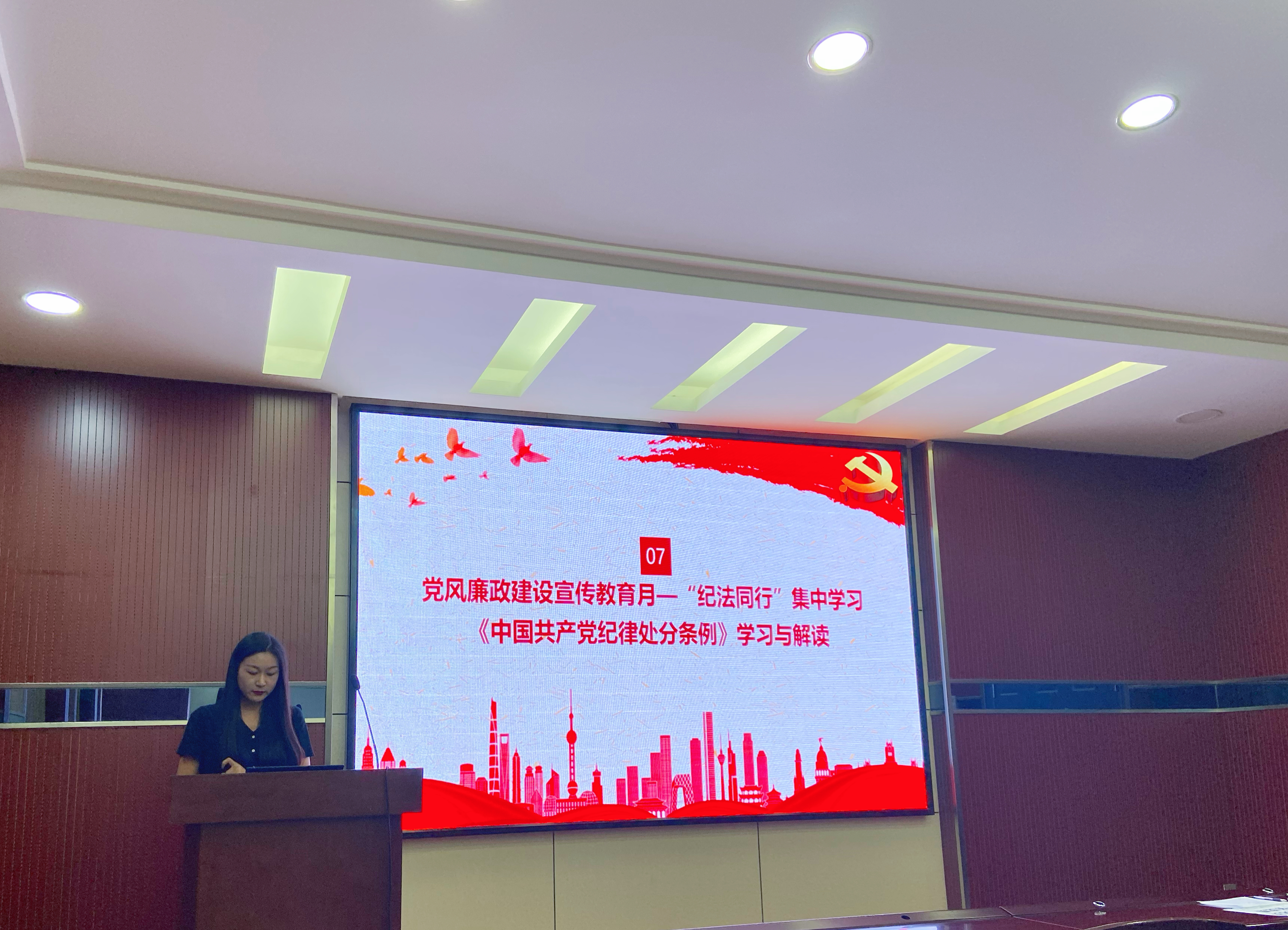 会议第二项,由党支部委员庞惠心同志为大家带来“纪法同行”学习分享——《中国共产党纪律处分条例》学习与解读。庞惠心同学介绍到,《中国共产党纪律处分条例》历经四次修改,从1997年颁布的《中国共产党纪律处分条例(试行)》到2018年的最新修订版,《条例》的政治性更强,内容更科学,逻辑更严谨,指导性和可操作性更强。作为新时代青年党员,应做到既勤政又廉政、既干事又干净、既干成事又不出事,以务实重行的精神推进全面从严治党,以脚踏实地的作风干好工作、做好科研,着力营造风清气正的政治生态和发展环境。