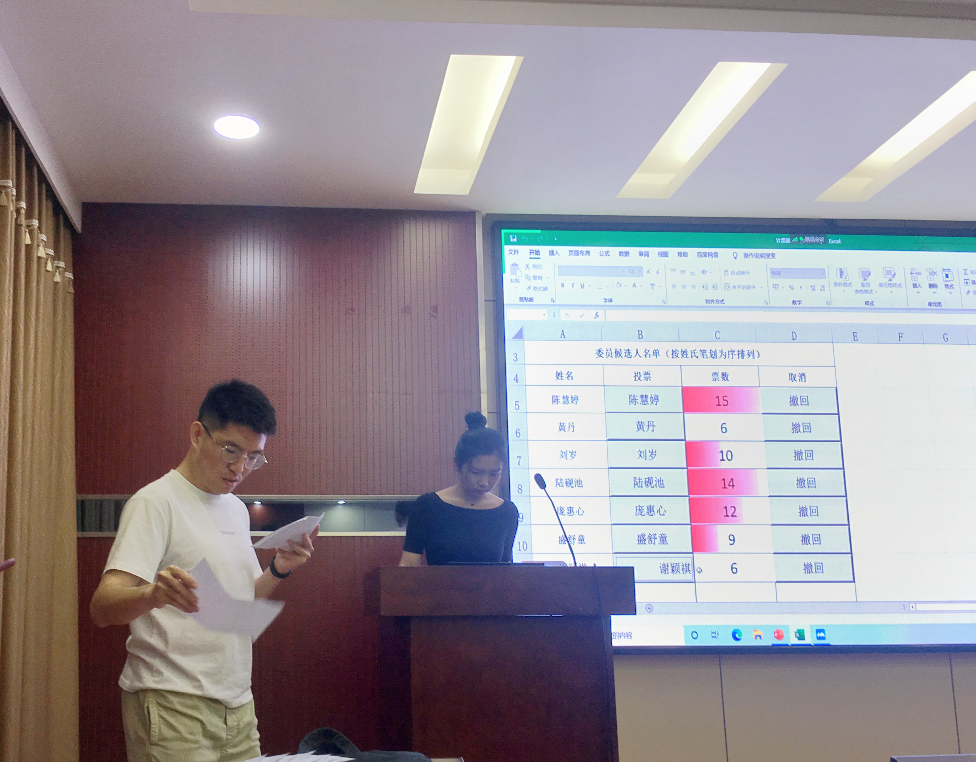 会议第一项,选举产生地理科学与国土资源系第一党支部委员会。按照党章和《中国共产党基层组织选举工作条例》的规定,及学校相关文件要求,由到会的正式党员举手表决通过支委会选举办法、支委委员候选人名单、监票人、唱票人和计票人等工作人员,采用无记名投票方式差额选举产生党支部委员会,监票人对选举过程进行全程监督、对选票的有效性严格把关,最后通过现场投票、唱票、计票,顺利产生了由陈慧婷、陆砚池、庞惠心、刘岁、盛舒童组成的支部委员会。