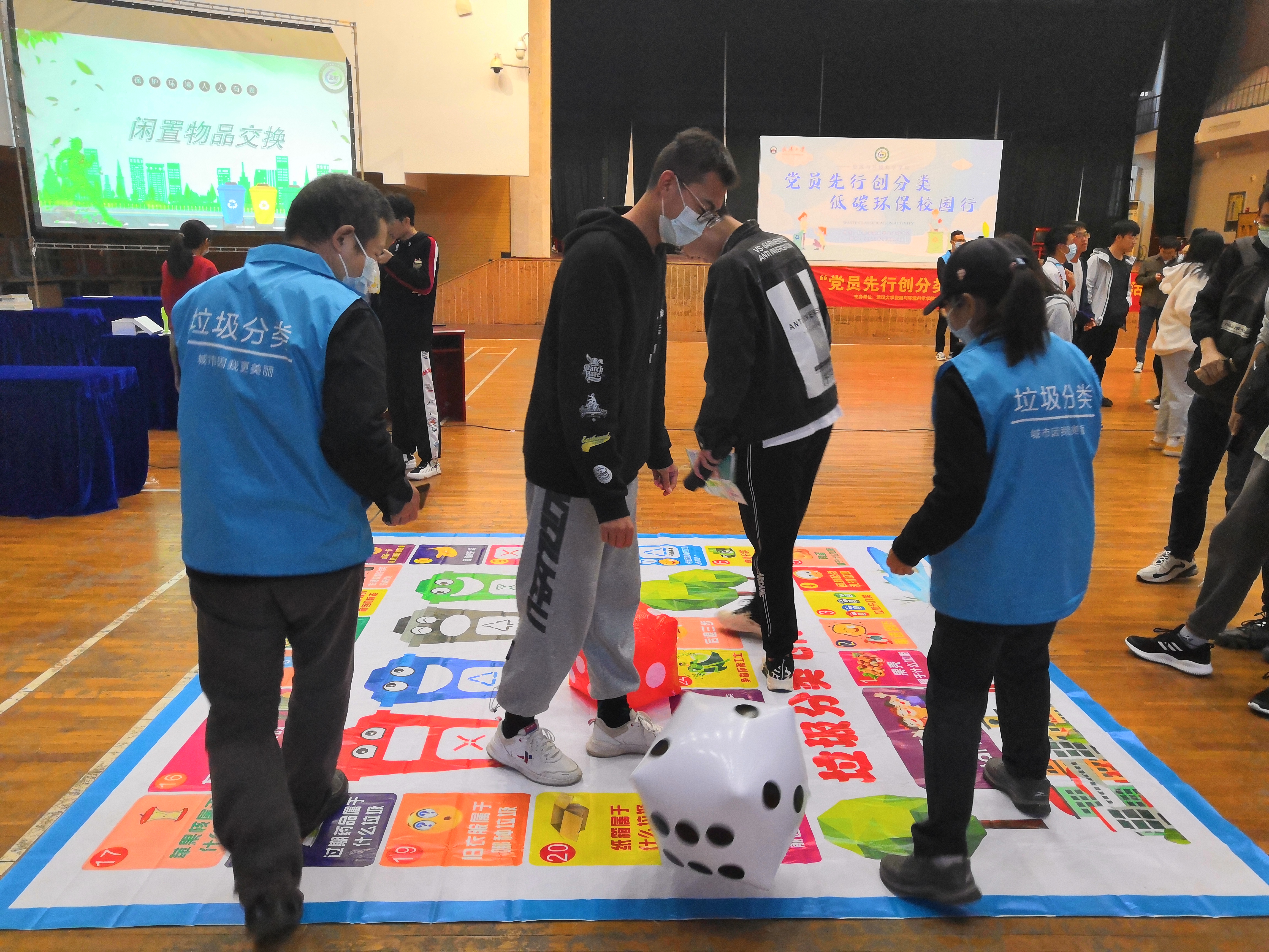 随后,在旧物交换的活动现场,有30个摊主需要将所在团队的闲置旧物品摆摊以进行现场交换。许多党员同志带上自己的闲置物品,在旧物交换的小摊逐个挑选自己心仪的物品,与摊主的旧物进行交换,活动现场气氛活跃融洽。在旧物交换旁的“垃圾分类飞行棋”游戏版块也是如火如荼的进行,党员同志们在游戏中也学习到不少垃圾分类的小知识。