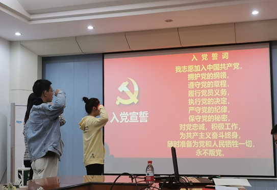 表决结束后,两位同志在组织委员樊玉鑫同志的带领下重温了入党誓词。他们表示,未来将进一步铭记庄严的承诺,牢记共产党员的政治责任、工作担当和光荣使命,进一步加强学习,充分发挥共产党员的先锋模范作用,在全面建设小康社会的征程中与时俱进、求真务实、开拓创新、为党的事业发展贡献青春力量。