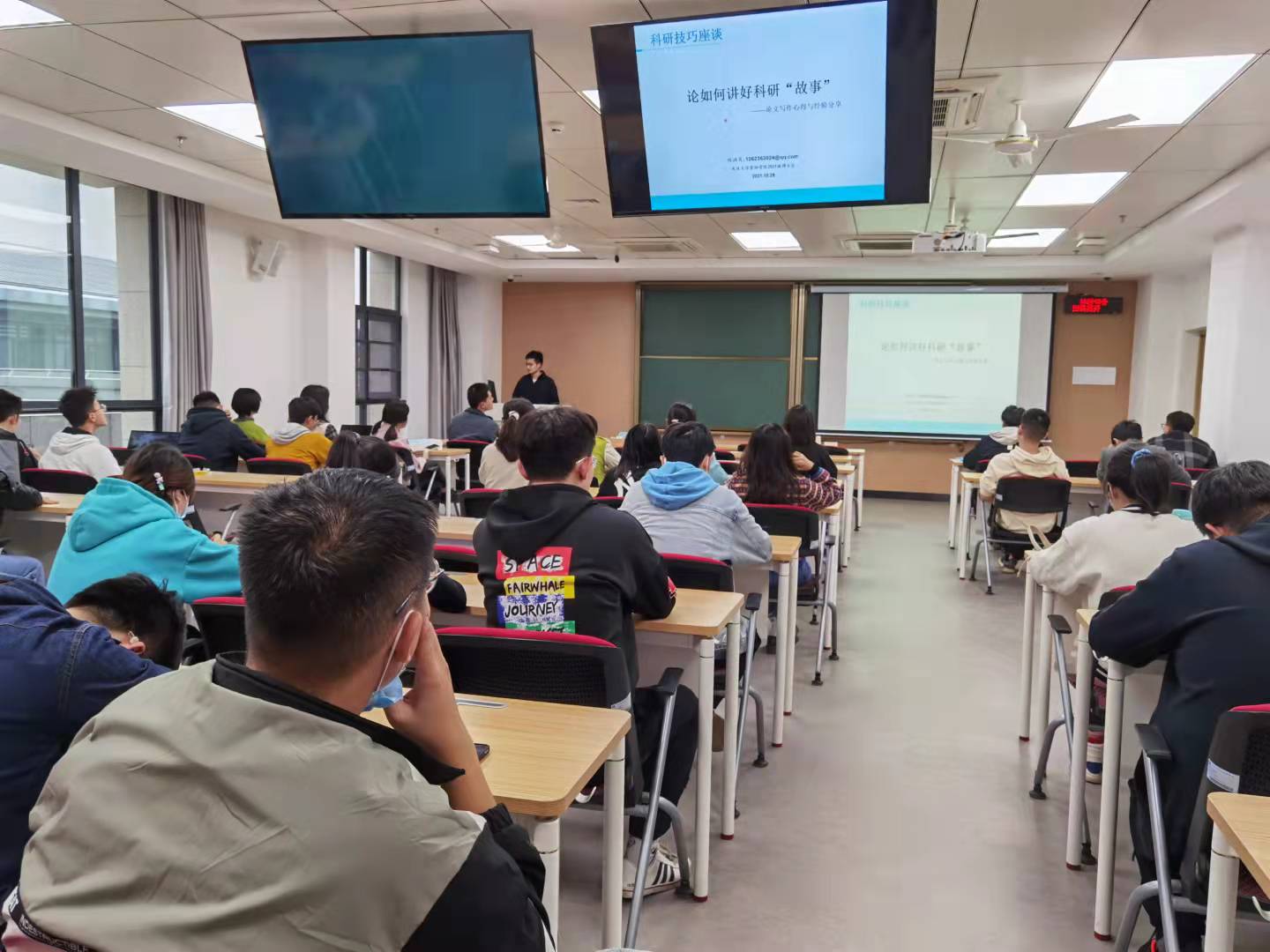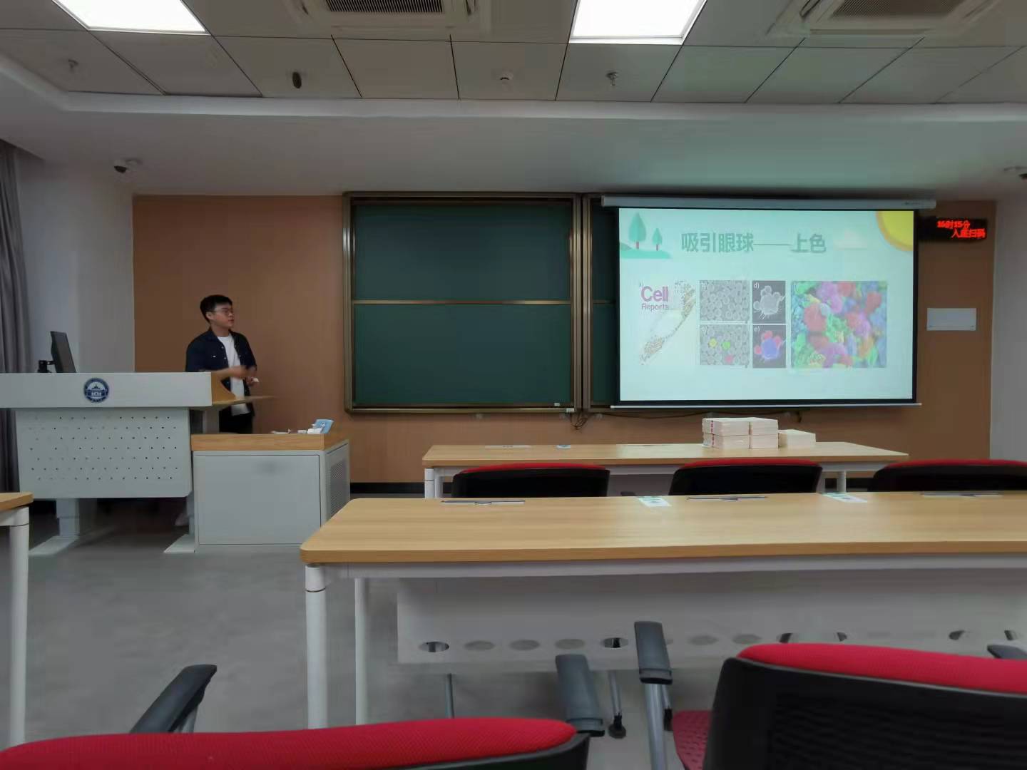 最后是由第五党支部的陈涵肖同志带来论如何讲好科研“故事"——论文写作心得与经验分享。陈涵肖同志的开头幽默且轻松,把论文写作的摘要和引言部分比作对人的第一印象。之后,他又分别介绍了论文写作的各部分应该如何展开,对参考文献的引用也给大家做了简单提醒。