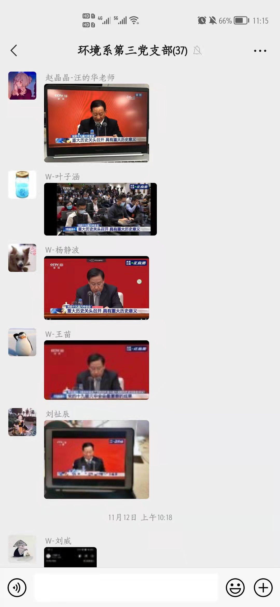 环境科学与工程系研究生第三党支部在工学部九教212会议室举办了“学习党的十九届六中全会精神”主题党日活动。活动主要分为两个部分,第一是组织支部全体成员集体观看党的十九届六中全会新闻发布会,第二是成员会后自由畅谈感悟并积极讨论。