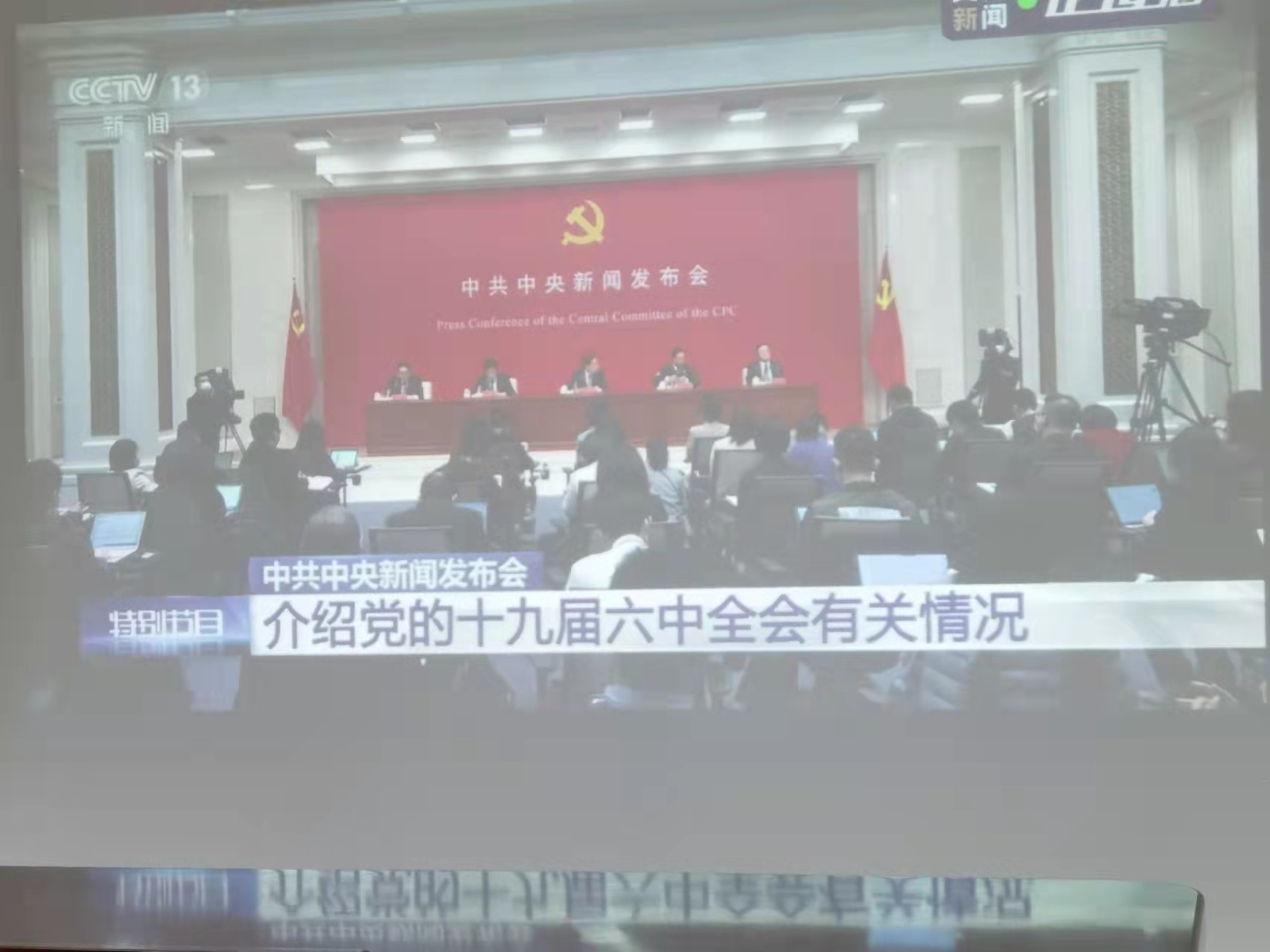 李子君:2021年11月12日上午,在党支部的组织下,我们观看了党的十九届六中全会新闻发布会的直播。全会通过的《中共中央关于党的百年奋斗重大成就和历史经验的决议》共七个部分,在内容摆布上有两个特点:一是与前两个历史决议主要总结党的历史教训、分清历史是非不同,这次着重总结党的百年奋斗重大成就和历史经验;二是重点总结新时代党和国家事业取得的历史性成就、发生的历史性变革和积累的新鲜经验。这个决议是一篇光辉的马克思主义纲领性文献,是新时代中国共产党人牢记初心使命、坚持和发展中国特色社会主义的政治宣言,是以史为鉴、开创未来、实现中华民族伟大复兴的行动指南。