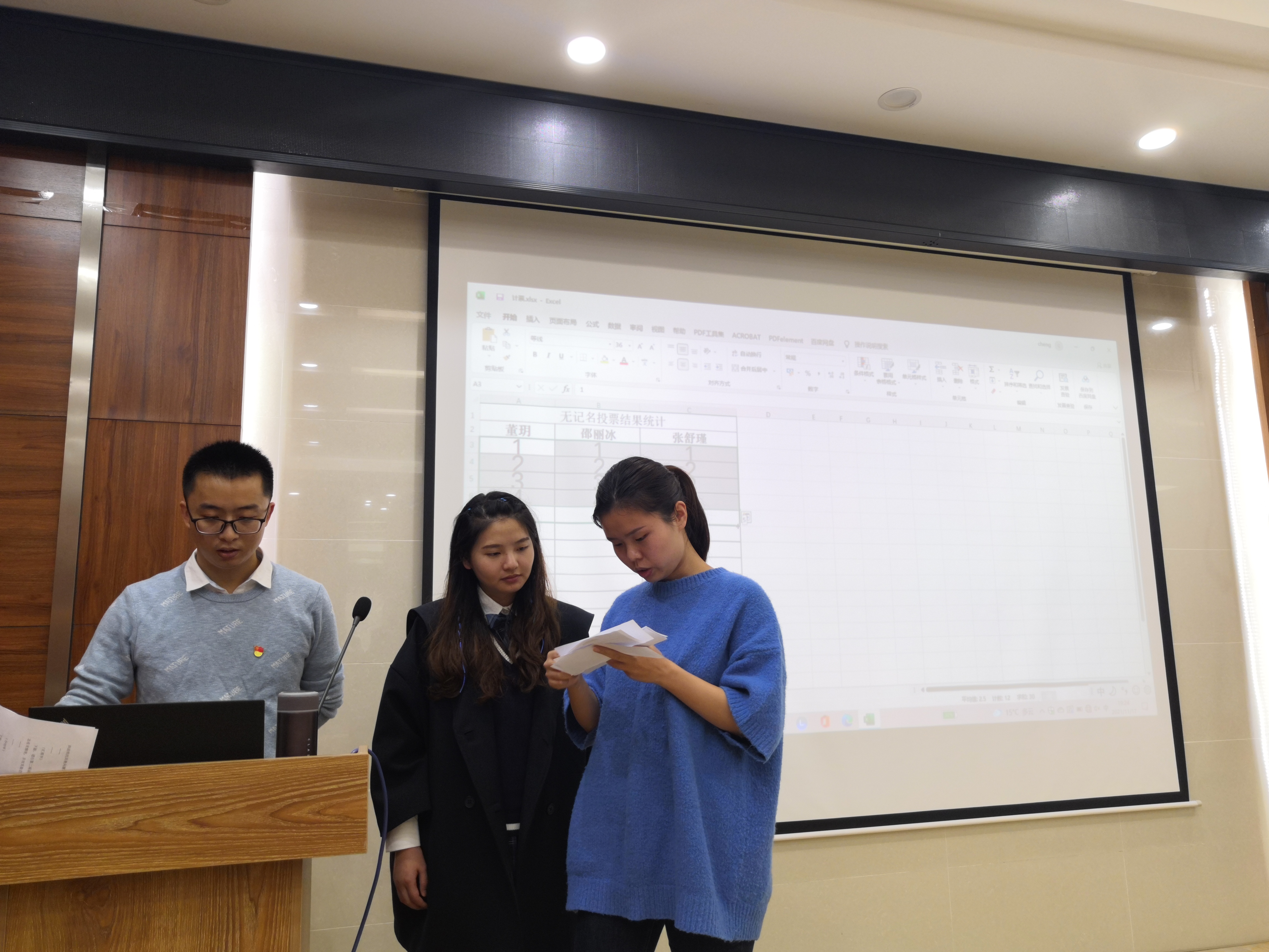 (五)会议第五项,无记名投票表决。对董玥、邵丽冰、张舒瑾三名同志的赞成人数均超过应到会有表决权的正式党员的半数,同意接收其为预备党员。
