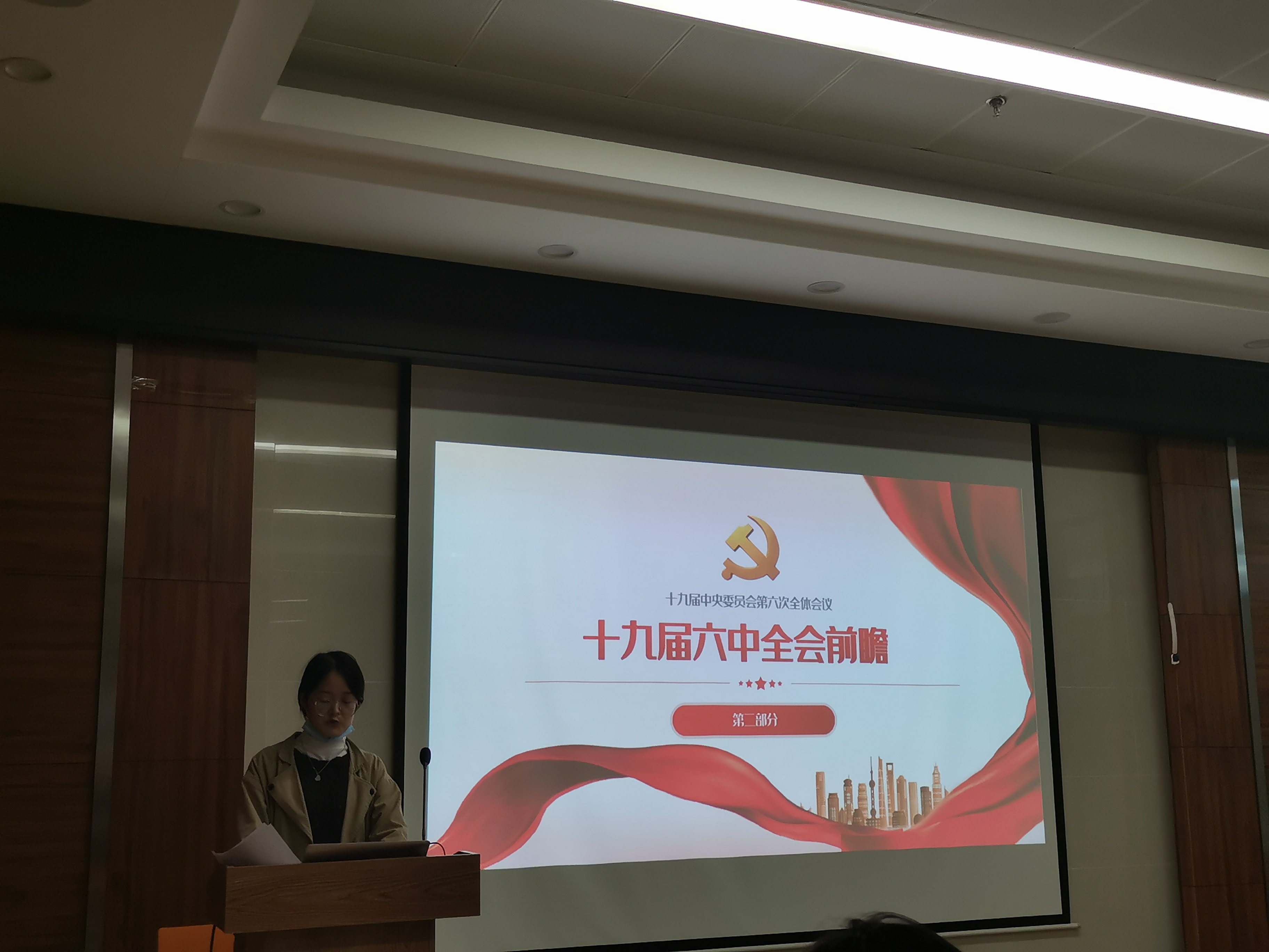 会议第二项,对党的十九届六中全会公报进行了集中学习。党的十九届六中全会重点研究并全面总结党的百年奋斗重大成就和历史经验问题,张梦同志介绍了党的十九届六中全会概况,并从前瞻角度解读了《中共中央关于党的百年奋斗重大成就和历史经验的决议》。与会党员同志们认真学习贯彻六中全会精神,并纷纷表示,作为研究生党员,要坚定理想信念,牢记自己的使命,始终谦虚谨慎、不骄不躁、艰苦奋斗,在第二个百年中为实现中华民族伟大复兴做出力所能及的贡献。