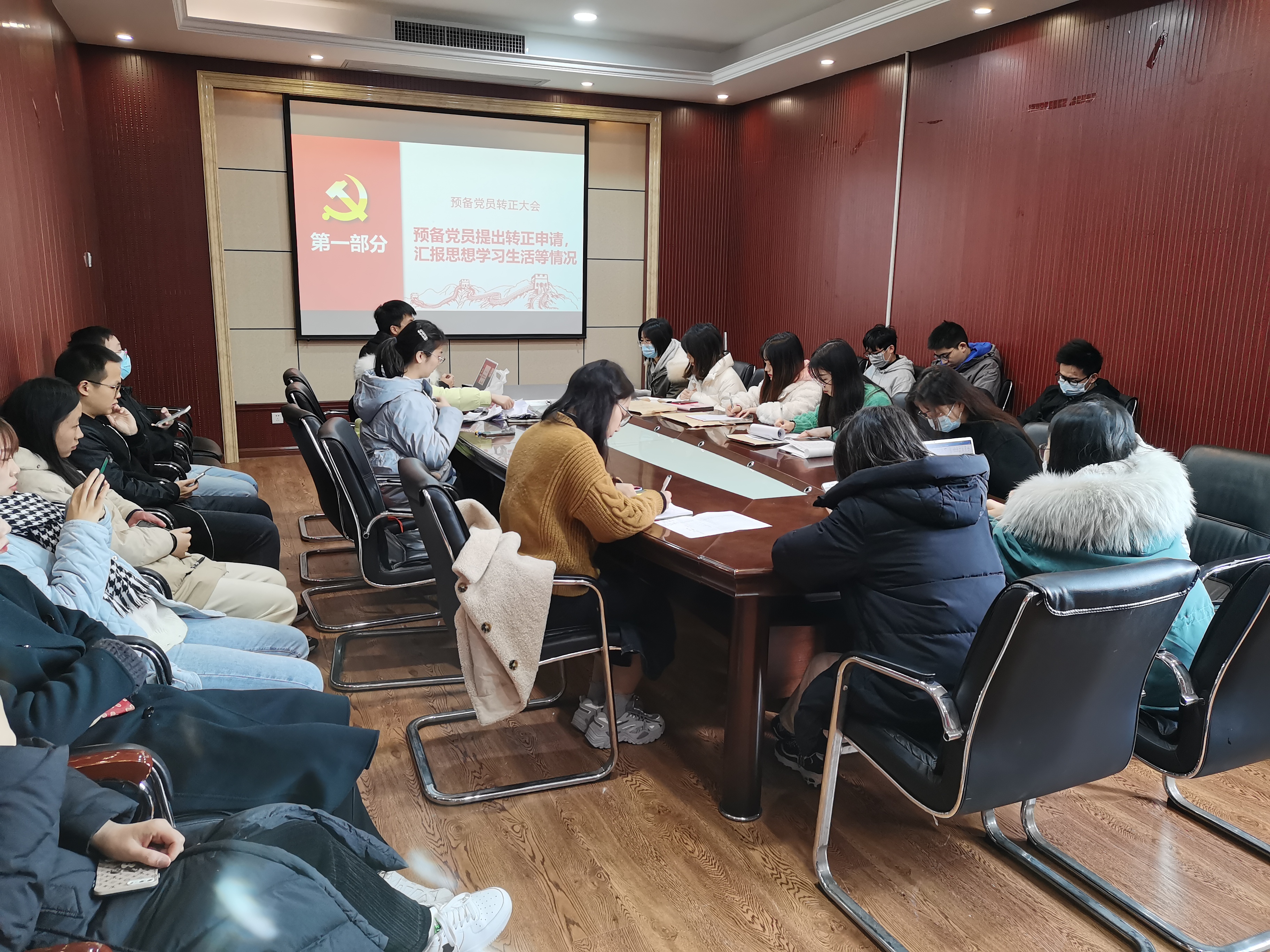 504会议室召开预备党员转正大会。会议由党支部副书记刘方恬同志主持,支部党员同志、预备党员及发展对象、入党积极分子、入党申请人参与此次会议。