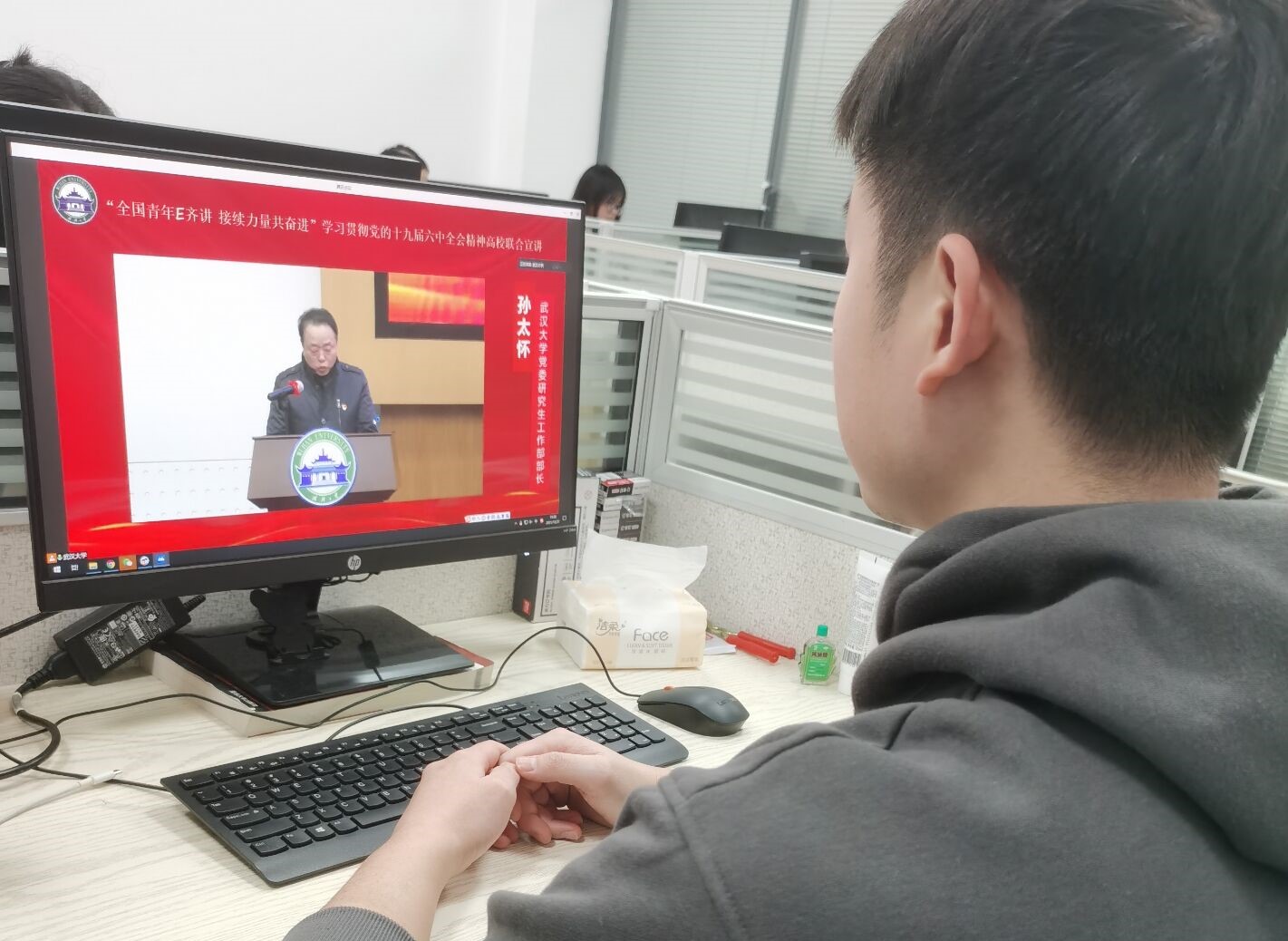 联合全国各高校宣讲团共同推出学习贯彻党的十九届六中全会精神联合宣讲活动——"全国青年E齐讲,接续力量共奋进”宣讲活动。地理科学与国土资源系研究生第五党支部组织全体正式党员、预备党员、发展对象、积极分子等自行观看线上直播,深入学习党的十九届六中全会精神,从党的百年奋斗历程中汲取智慧和力量。