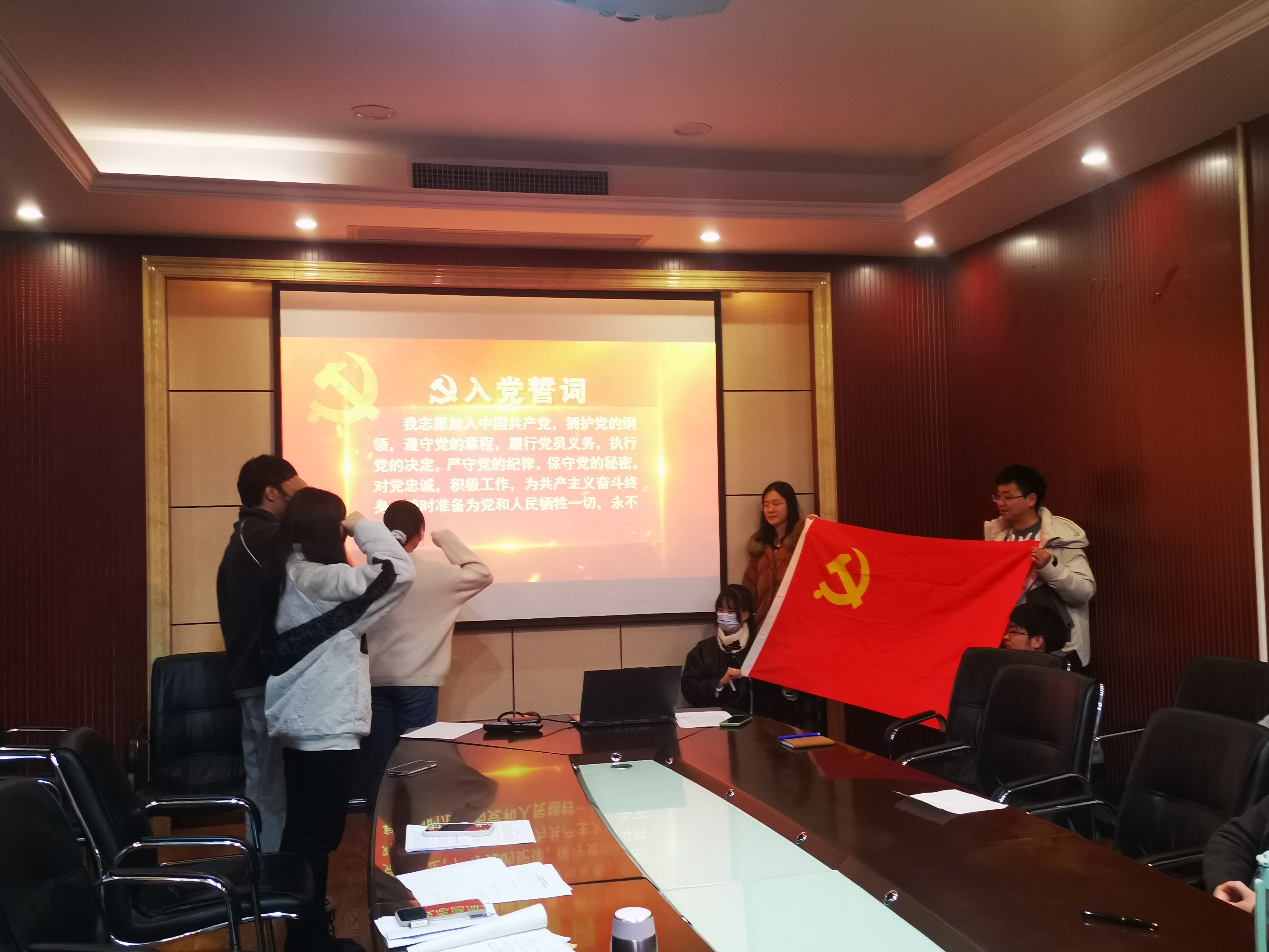 最后,由组织委员李栩滨同志领誓,带领新同志向党组织庄严宣誓。在领誓人的领读下,用慷慨激昂的语气,庄严向党旗宣誓,表达了对党的忠诚、为共产主义事业奋斗终身的决心。