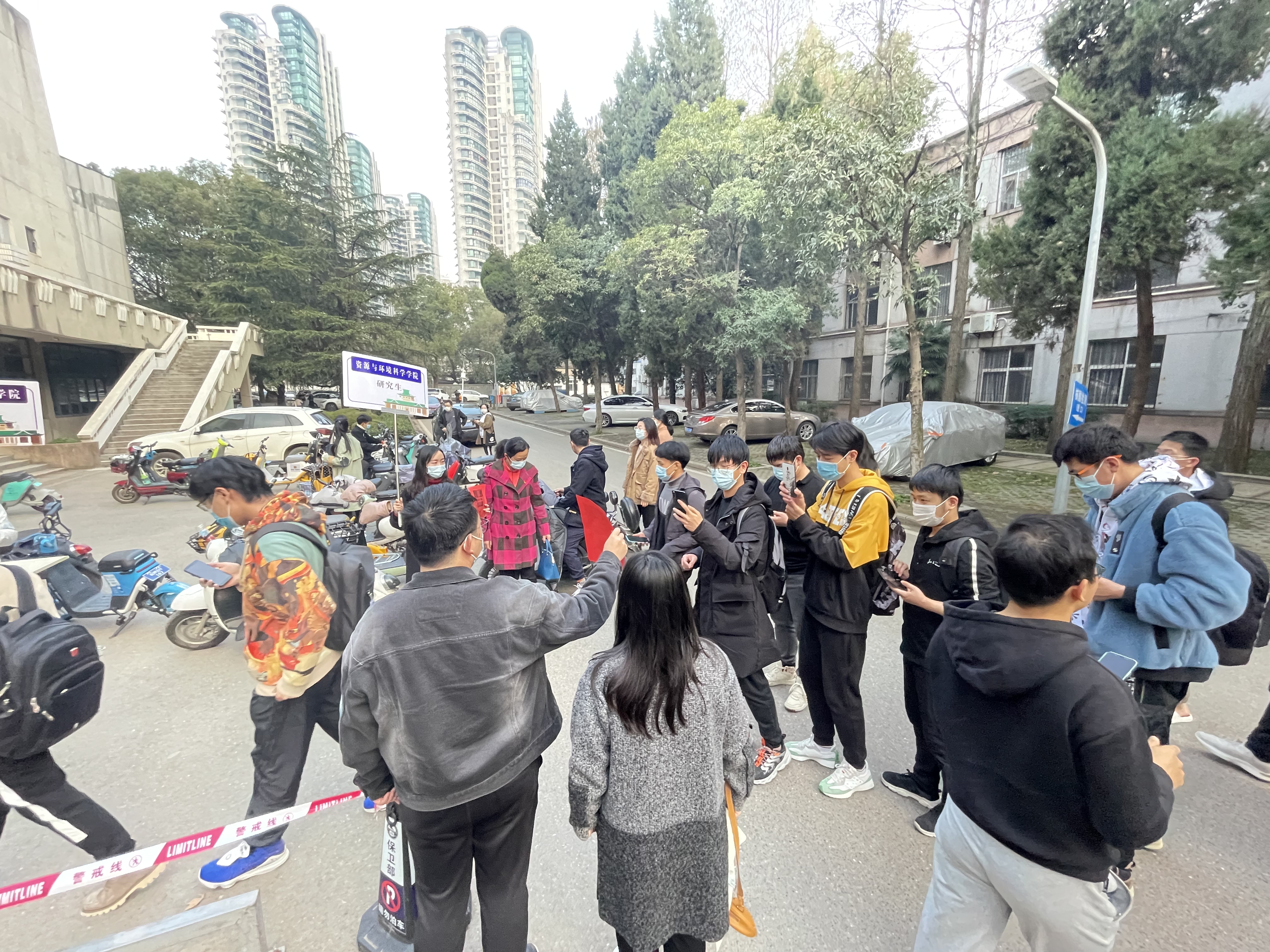 “让党旗在防控疫情斗争第一线高高飘扬。”接到第二轮核酸检测通知后,学院党委副书记马丽华老师,研究生辅导员梅菲老师、李韩老师迅速布置工作,时刻关注检测进度,敦促全院师生“一人不落,应检尽检”。4日下午,三位老师来到核酸检测现场,与学生志愿者们一同维护现场秩序,在检测站点门口引导师生、居民扫码,并为匆匆赶来,忘记戴上口罩的同学们送上防护口罩。