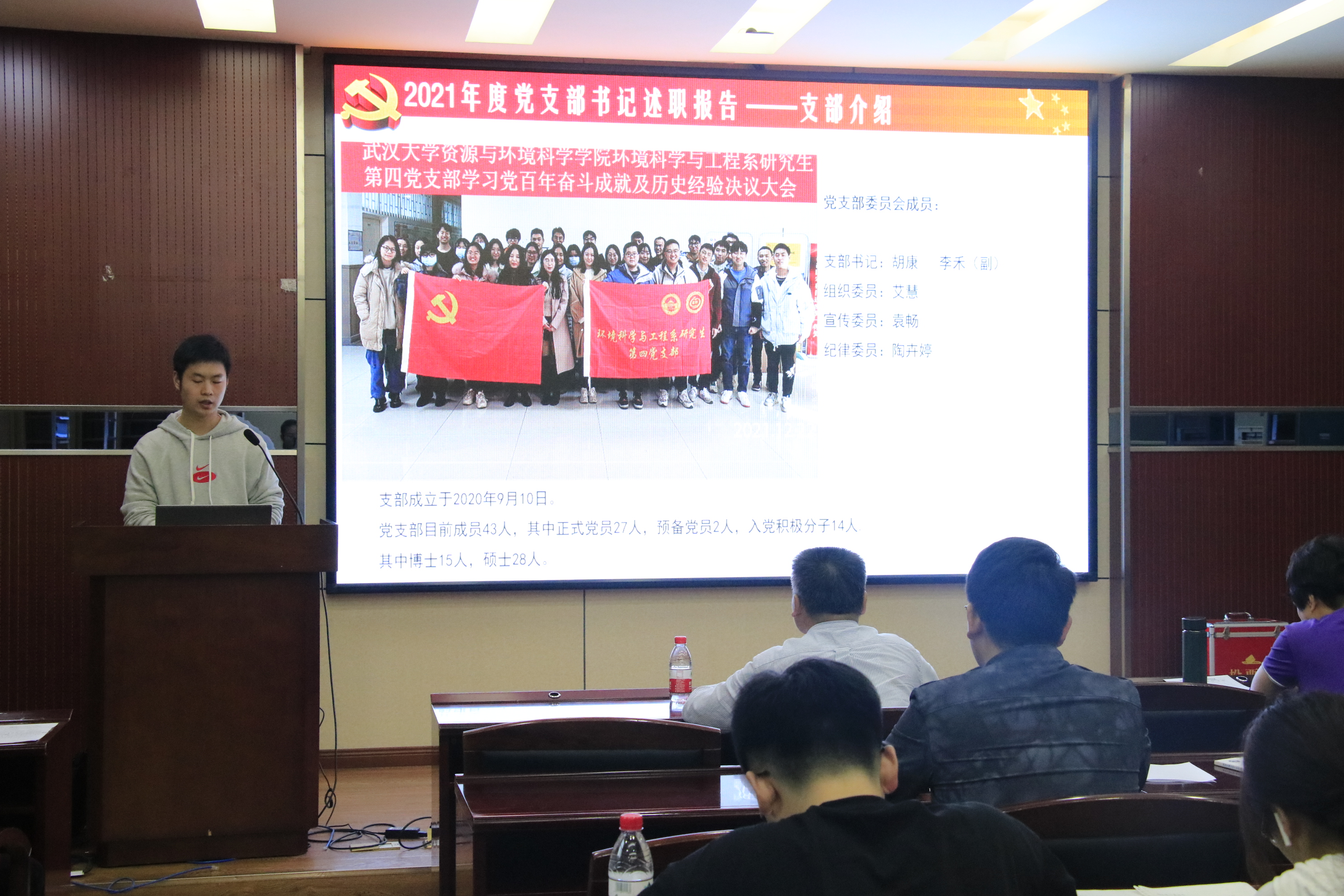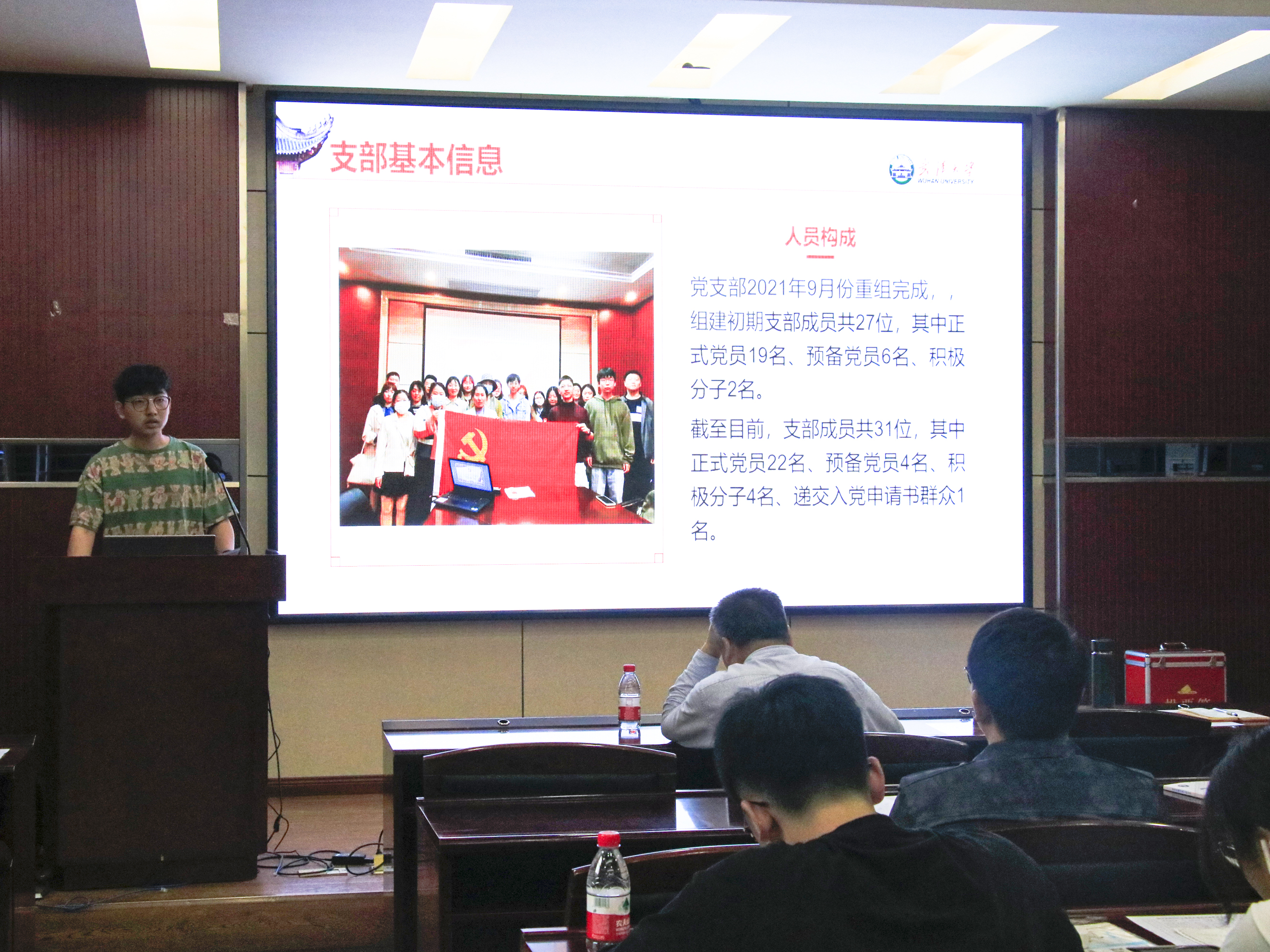 全院21个学生党支部书记依次进行了现场述职,从支部情况、支部“三会一课”、支部规范化建设、特色活动及亮点、存在问题及对策等方面介绍了支部一年来的组织建设。2021年度,各党支部围绕关键词“党史学习教育”开展党的最新的理论政策和思想的学习,强化政治引领作为各项活动召开的基石,夯实支部组织建设;围绕关键词“党的十九届六中全会”开展系列学习宣传教育,深入贯彻落实党的十九届六中全会精神;围绕关键词“全面从严治党”制定支部规范化标准化建设条例,分门别类为支部成员制定跟踪成长式台账,严格落实请假、考核与签到制度;围绕关键词“十四五”规划开展“听青年说”微党课系列活动,引导党员学深悟透党中央精神、国家需求及战略方针,激发党员学党史、讲党课、悟党性的热情;围绕关键词“我为群众办实事”开展垃圾分类、义务植树、空巢老人探访等志愿服务活动,拓宽了服务群众的渠道,树立党员先锋模范带头作用。此外,支部书记针对支部成员学习积极性和主动性不高、支部政治引领意识薄弱、支部创新活力不足等方面提出解决办法,并规划下一阶段即将开展的工作。