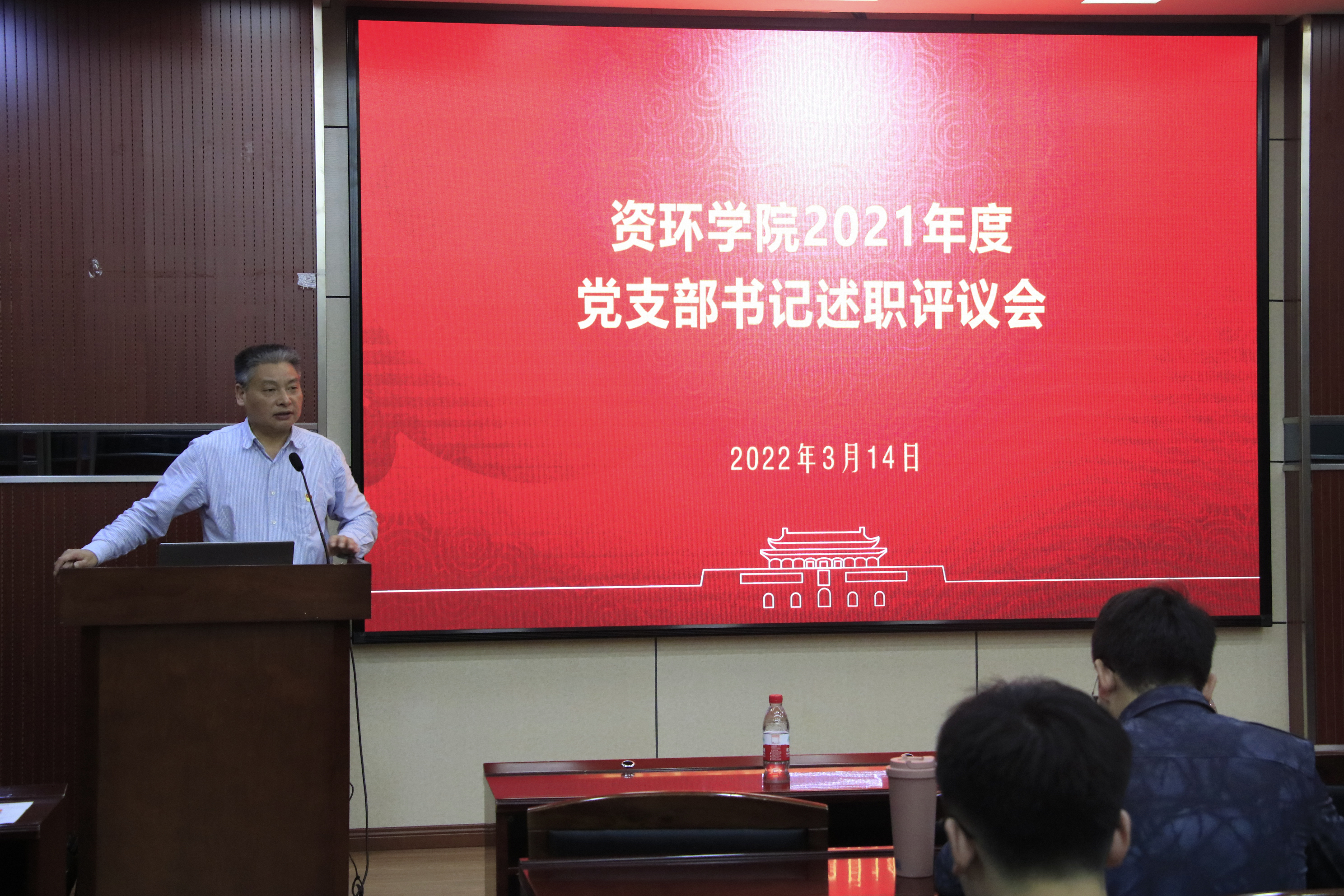 2021年度党支部书记述职评议在学院220会议室召开。出席会议的有学院党委书记刘兴国,党委副书记冯丹、马丽华,党政办公室副主任易真,辅导员梅菲、李韩,5个本科生党支部、17个研究生党支部书记及支委代表。会议由马丽华主持。