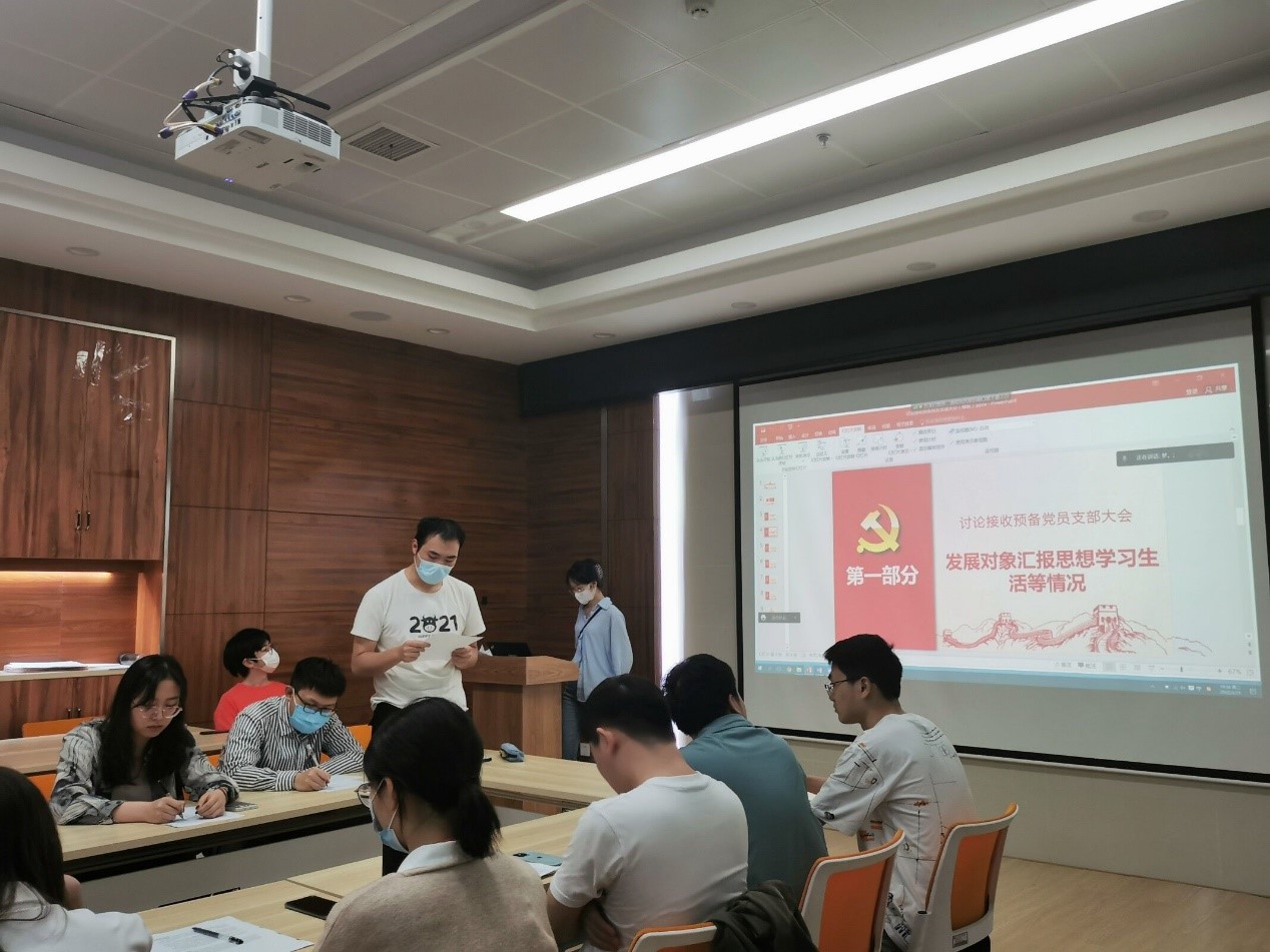 发展对象廖佳君同志、黄煦原同志、叶蕾同志汇报对党的认识、入党动机、本人履历、现实表现,以及需向党组织说明的其他问题。黄煦原同志的入党介绍人赵冲、王卓伦同志介绍黄煦原同志的基本情况,廖佳君同志的入党介绍人沈铃英、张梦同志介绍廖佳君同志的基本情况,叶蕾同志的入党介绍人包雨睿、孙晴萱同志介绍叶蕾同志有关情况。入党介绍人对三位同志能否入党表明了意见。之后,组织委员辛成同志代表支部委员会报告对三位同志的审查情况,与会党员发表意见,对廖佳君同志、黄煦原同志、叶蕾同志能否入党进行充分讨论。与会党员依次对发展对象能否入党进行无记名投票表决。