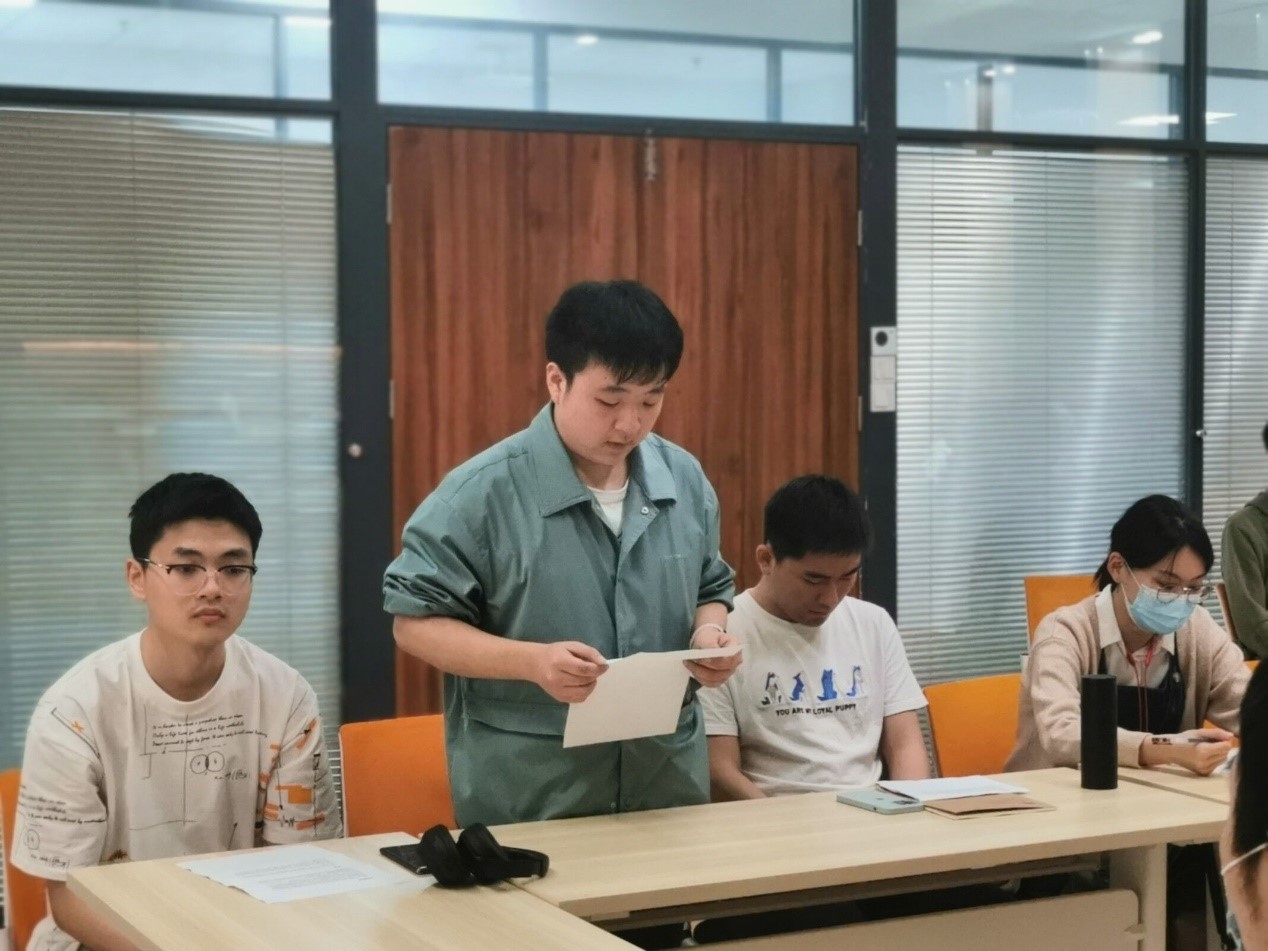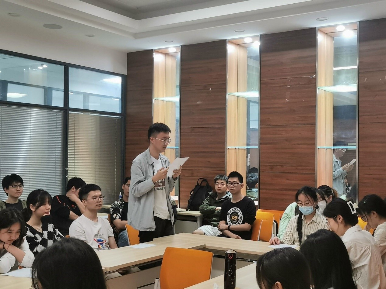 会议第一项,讨论发展对象张江玥等九名同志入党问题。发展对象张江玥同志、申晴蕾同志、曹浩杰同志依次汇报对党的认识、入党动机、本人履历和现实表现。随后,张江玥同志的入党介绍人赵冲、张惠同志,申晴蕾同志的入党介绍人张梦、赵冲同志,曹浩杰同志的入党介绍人包雨睿、赵冲同志分别介绍三位同志的基本情况,并对其能否入党表明意见。之后,党支部副书记包雨睿同志代表支部委员会报告审查情况,与会党员对发展对象是否符合党员条件发表了意见,并依次对发展对象能否入党进行无记名投票表决。