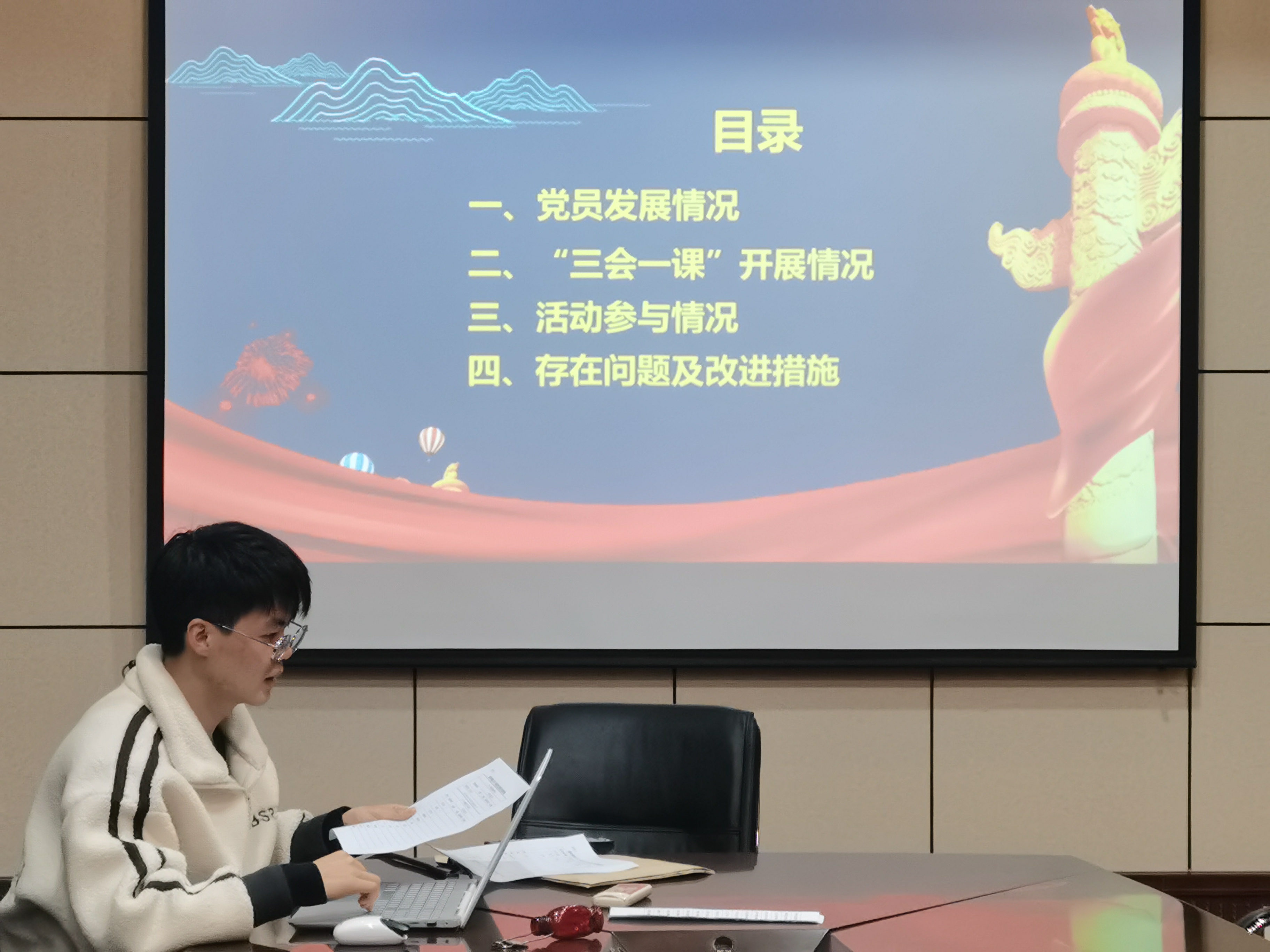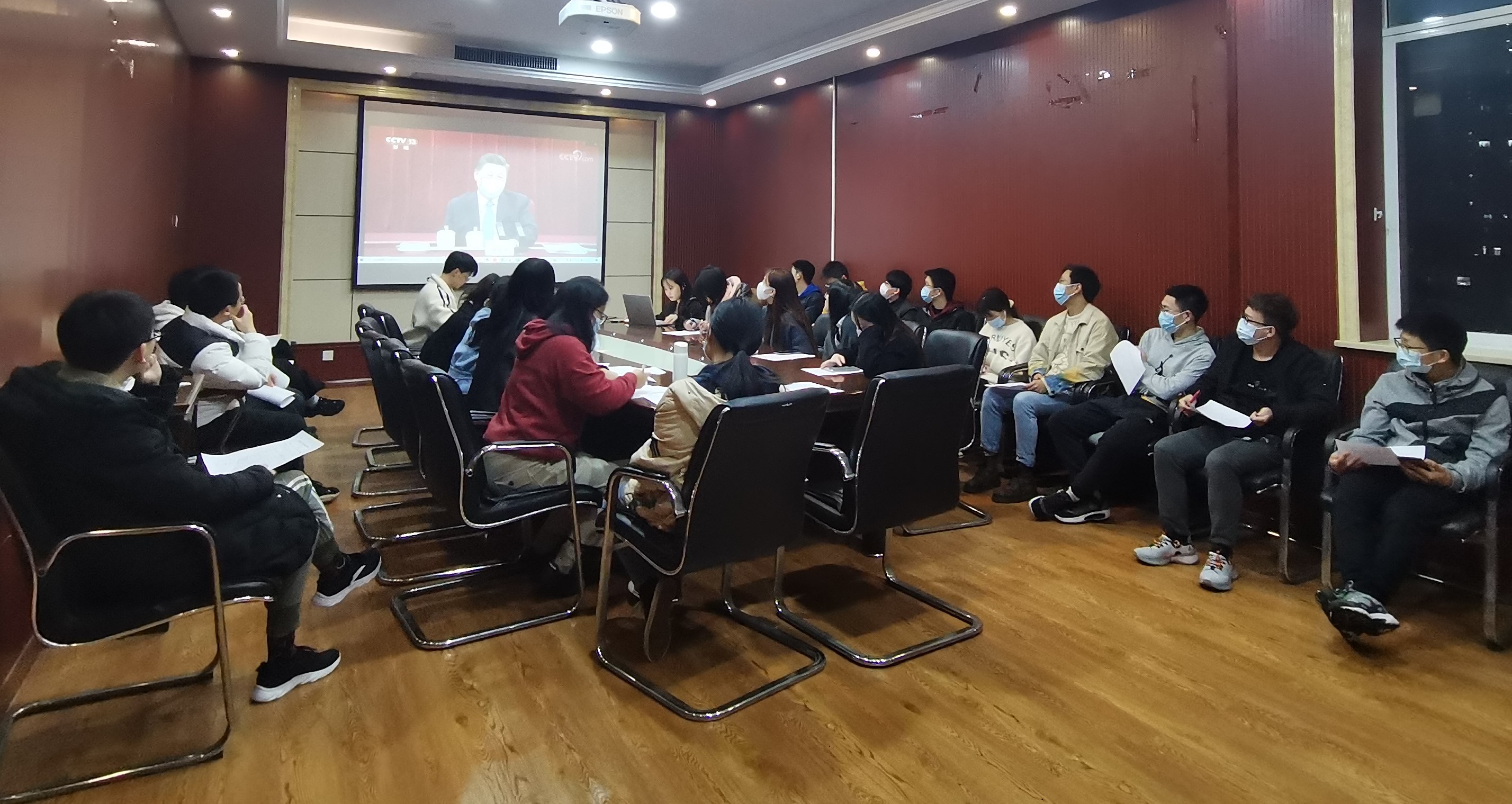 会议第二项,学习两会精神。支部成员一起观看了2022年全国两会视频,学习领会习近平总书记在两会期间的一系列重要讲话精神,认识到要以实际行动迎接党的二十大胜利召开。观看结束后,苏会钰、翦英豪、刘方恬、齐鲁荷同志结合自身经历和专业课题,分享了对两会的学习和理解心得。