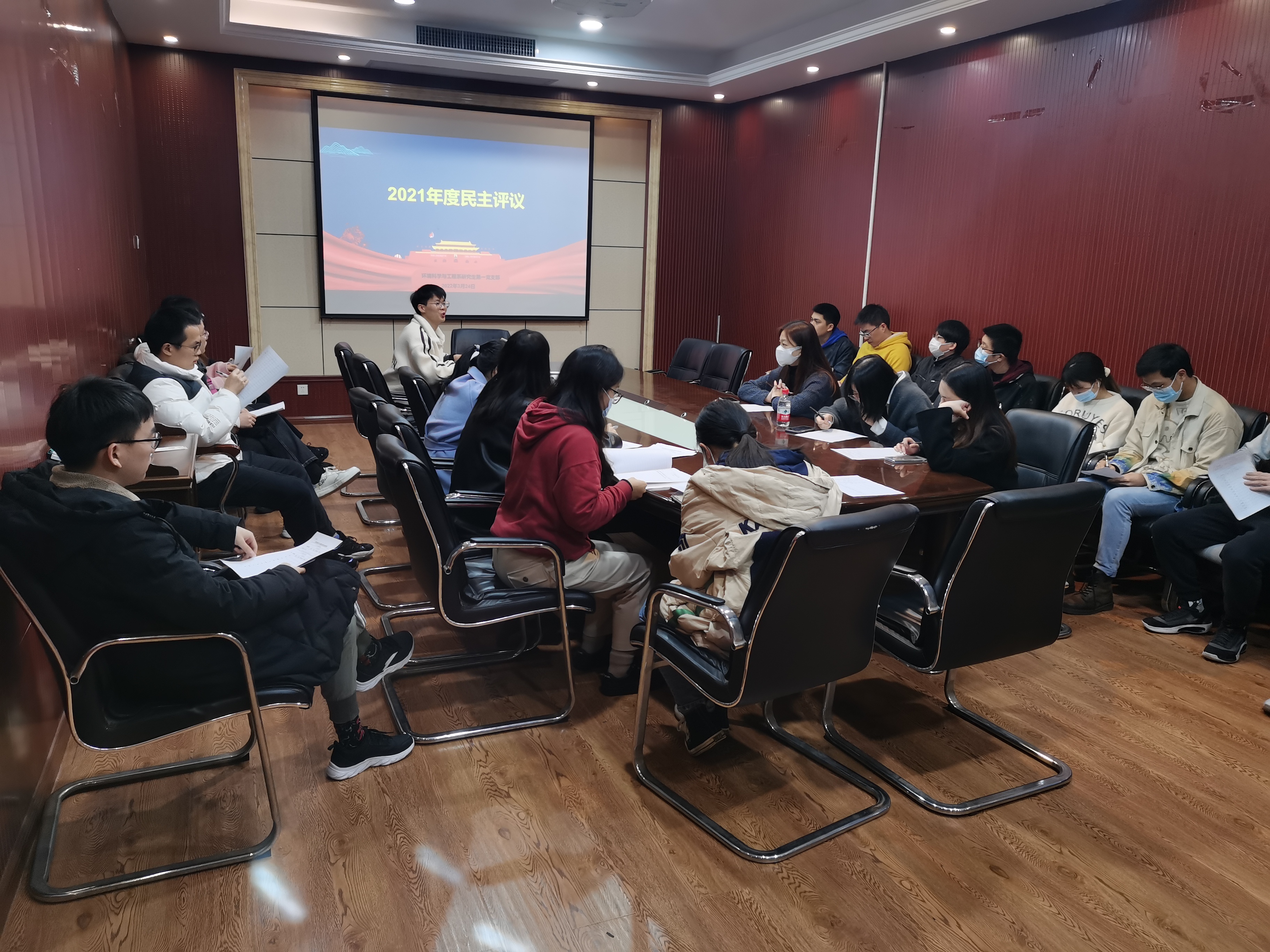 会议第一项,开展民主评议。首先,支部书记苏会钰总结了2021年度党支部的党员发展情况、“三会一课”开展情况、支部活动组织和参与情况,对党支部存在的不足提出了改进措施。接着发放测评表,支部党员同志对党支部和所有党员进行民主评议,按照“优秀”、“合格”、“基本合格”、“不合格”四种情况进行无记名投票。