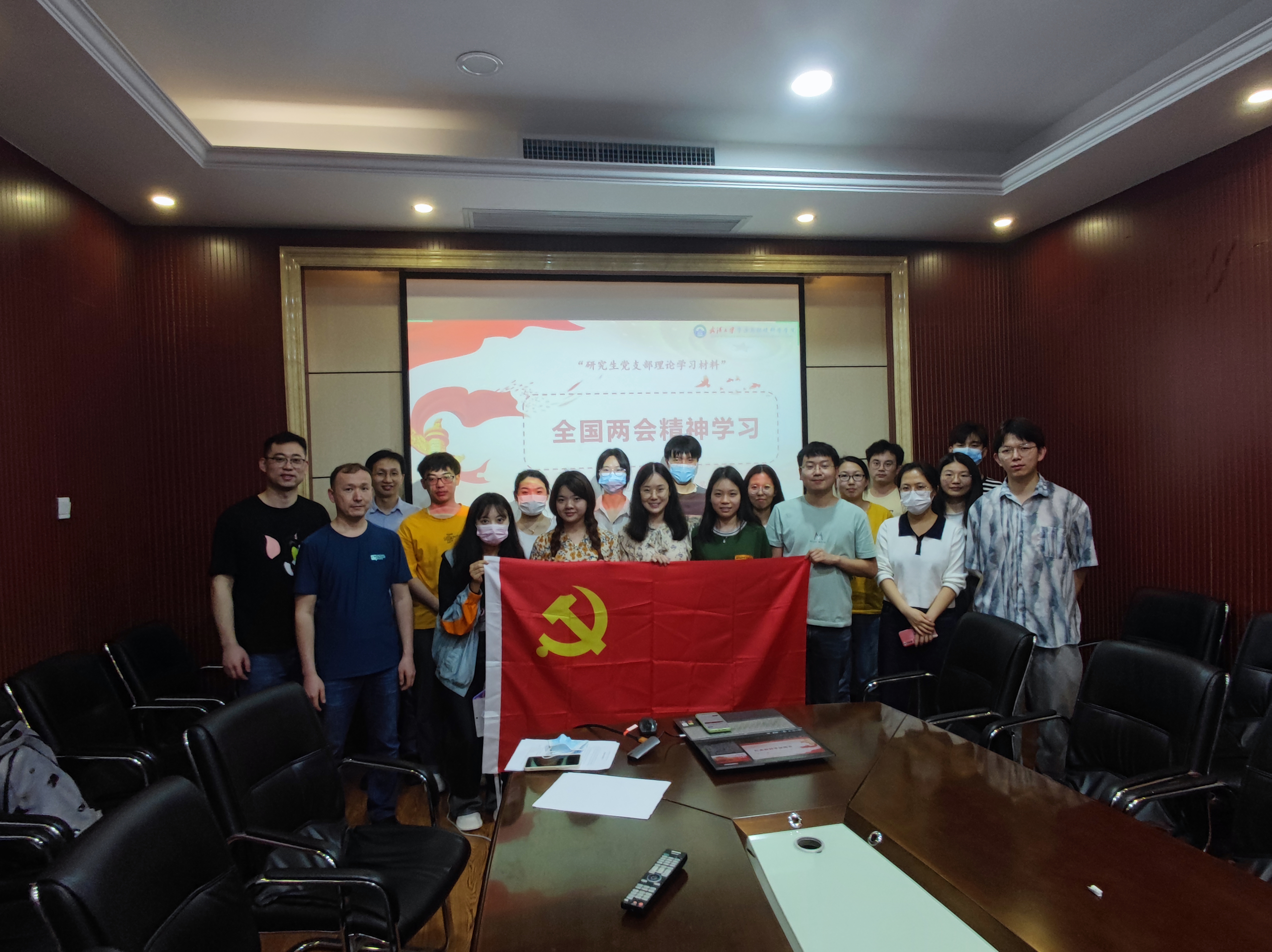 2022年4月25日晚19:00,地理信息与地图科学系研究生第一党支部主题党日活动于院办504会议室开展,活动采用线上和线下相结合的形式。主要议程是支部集体学习全国两会精神。本次会议按支部安排,由支部宣传委员肖一心同志主持,应到正式党员24人,参会正式党员20人、预备党员5人。
