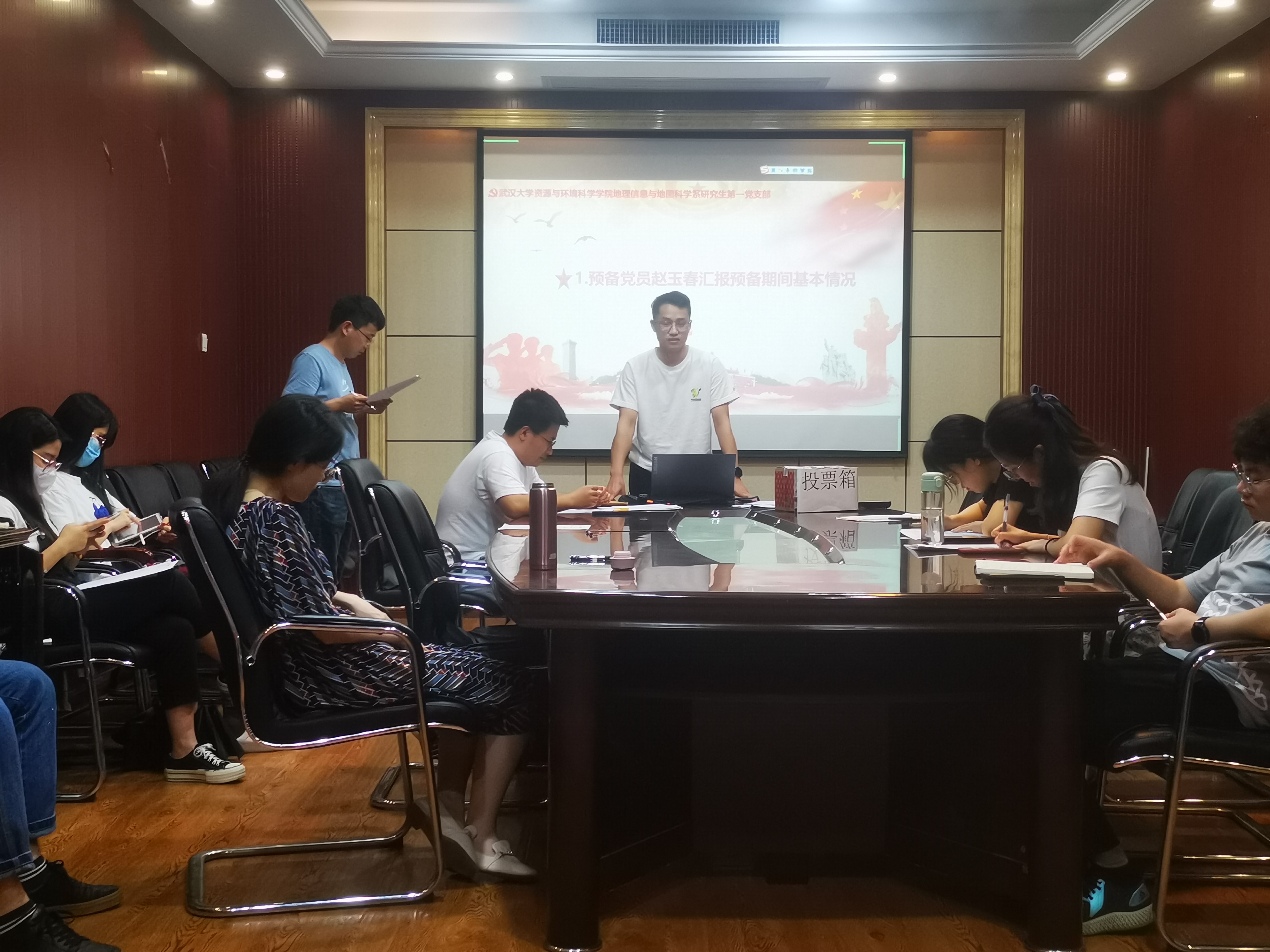 2022年5月27日晚19:00,地理信息与地图科学系研究生第一党支部党员转正大会于院办504会议室召开。会议主要议程有以下两项:一是支部集体进行习近平总书记在中国人民大学考察时重要讲话精神的学习;二是党支部讨论了预备党员赵玉春同志和刘子锐同志转正相关事宜。本次会议由支部书记李石标同志主持,本次会议应到正式党员26人、预备党员7人,实到正式党员22人、预备党员6人。